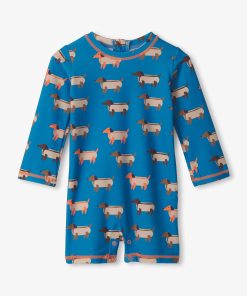 The Baby Boys Hot Dogs One-Piece Rashguard is a recipe for fun! Featuring whimsical hot dog prints and protective, quick-dry material, it’s as practical as it is adorable. Your little one will relish every sunny moment in this playful swimsuit.