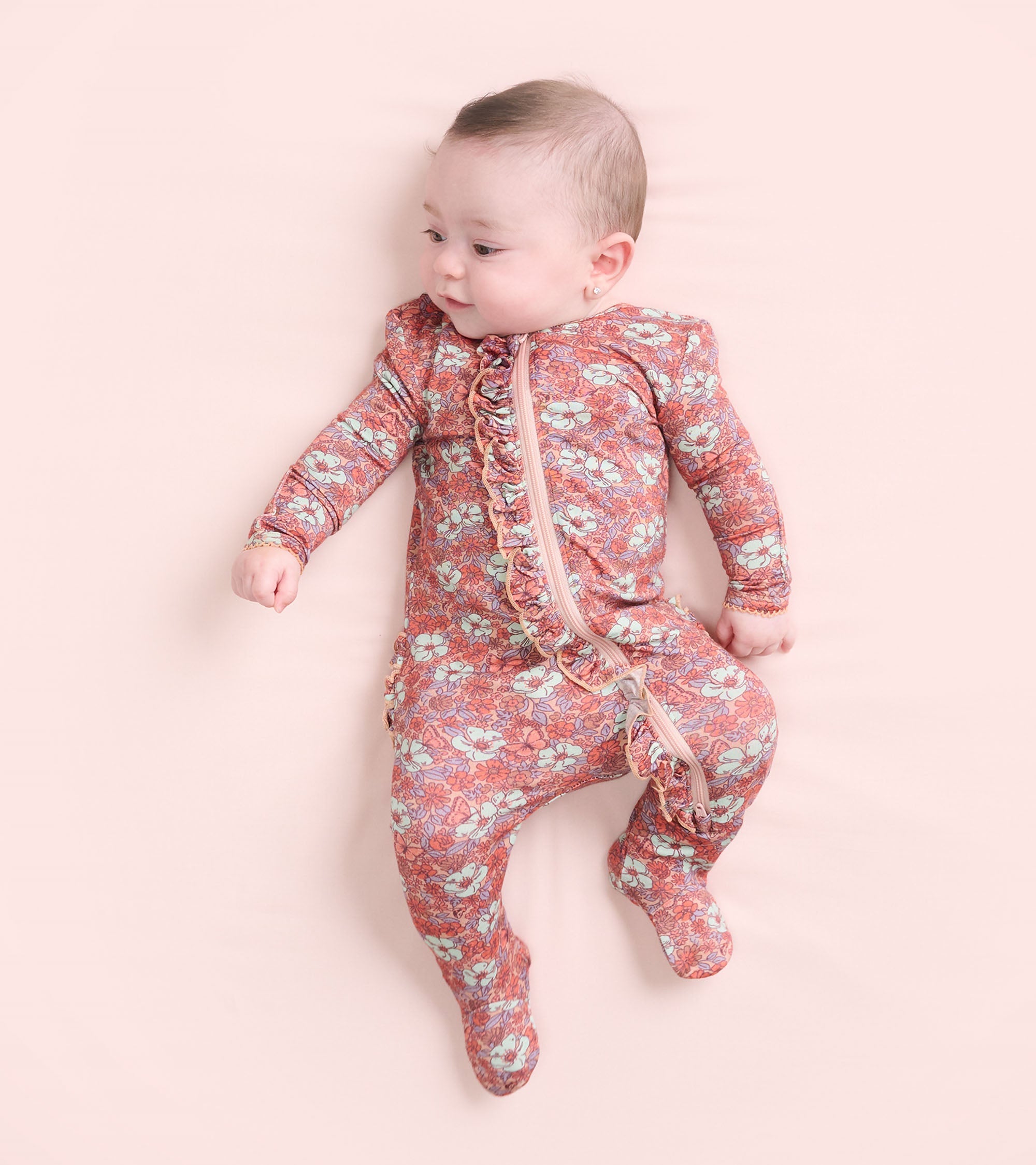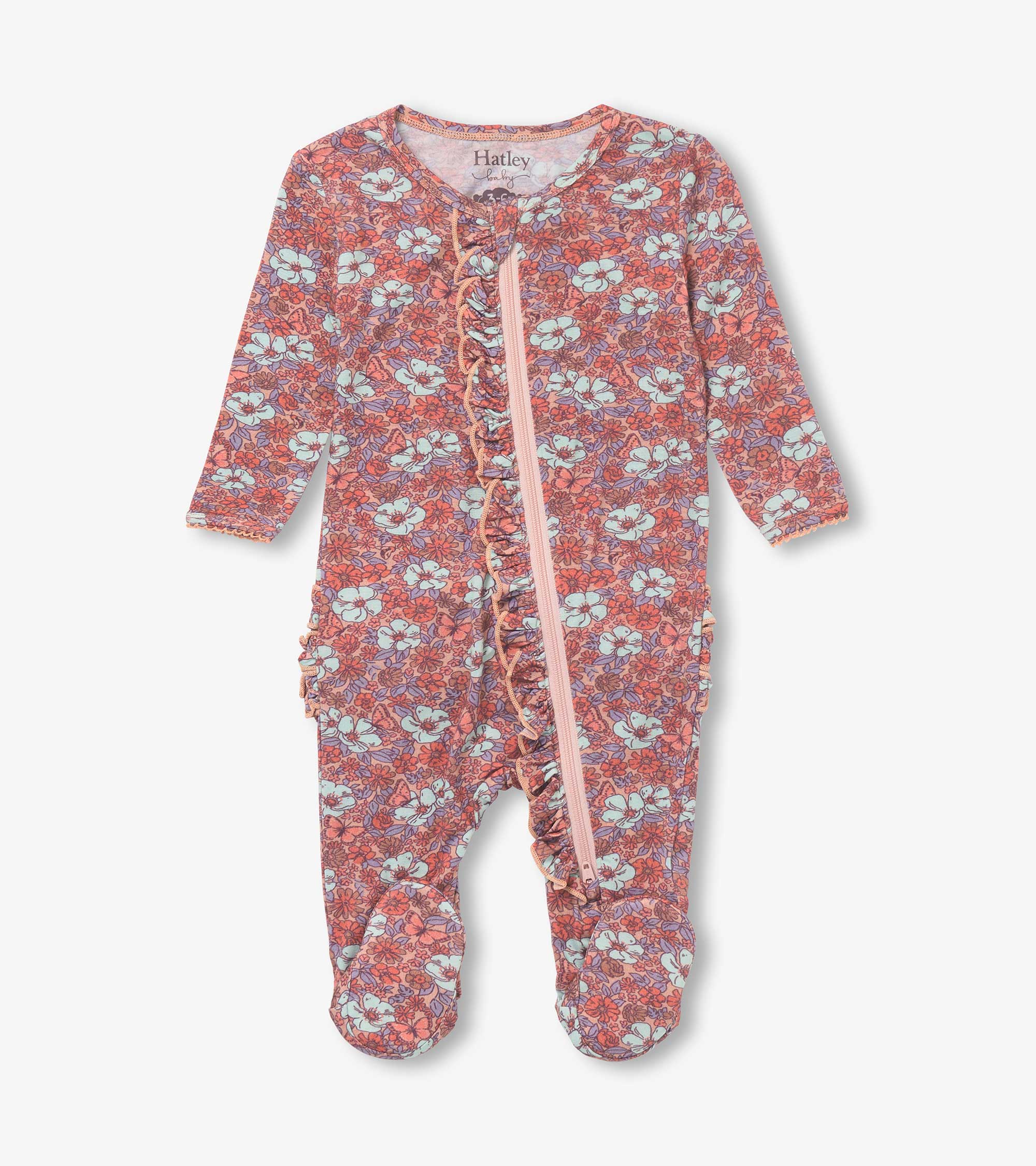 Keep her cozy in the Baby Girls Groovy Flowers Footed Sleeper! Made from buttery-soft bamboo fabric, this sleeper features vibrant floral prints that bring joy to bedtime. The footed design keeps her snug, while the stretchy material ensures comfort for sweet dreams. A perfect choice for stylish sleepwear!