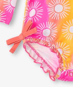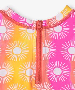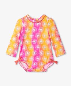 Let your little one shine with our Baby Girls Sunshine Rashguard Swimsuit. Crafted from a nylon and spandex blend to ensure your little one stays comfortable on their aquatic adventures, this suit is the perfect playful piece for days by the beach.