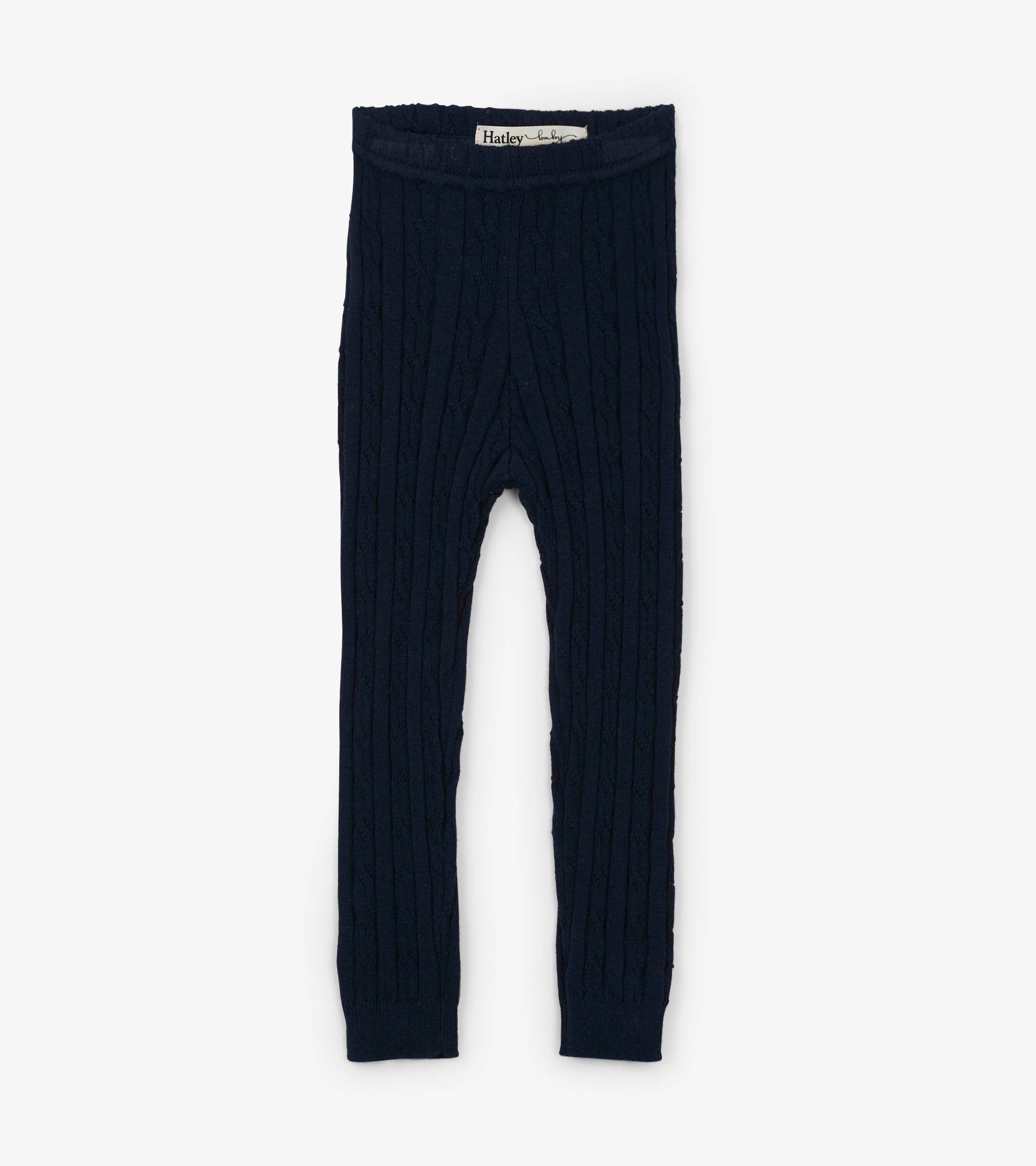 Essential to every winter wardrobe, these stretchy cotton blend navy cable knit leggings will make exploring easy, comfortable, and stylish! Paired with a dress or just with a simple tee, they’ll want to wear these to daycare every day.