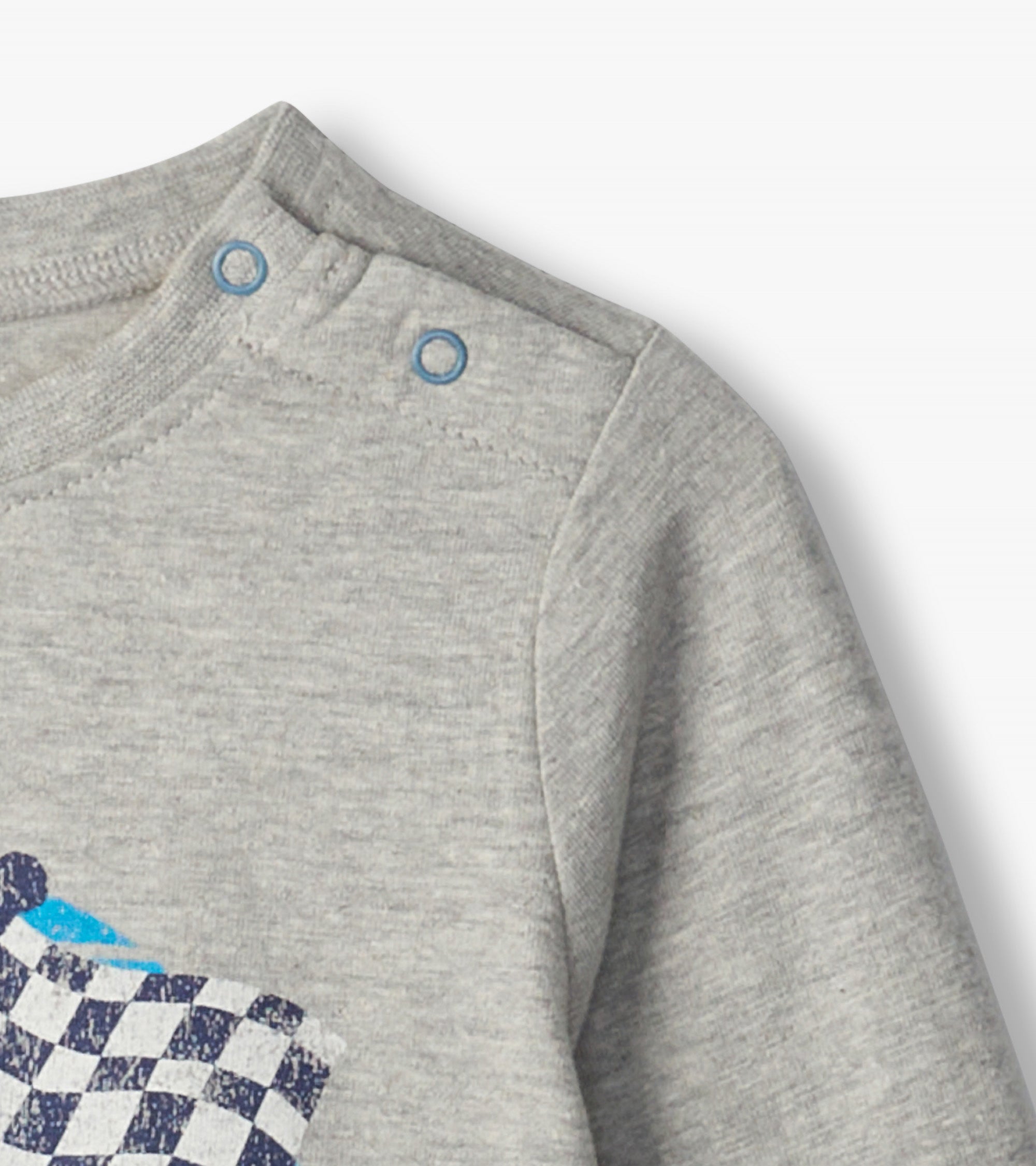 Rev up his style with the Baby & Toddler Boys Checkered Flag Long Sleeve T-Shirt! This dynamic shirt features a fun checkered flag design and a comfortable cotton and polyester blend. Perfect for little racers who love to zoom around in style.