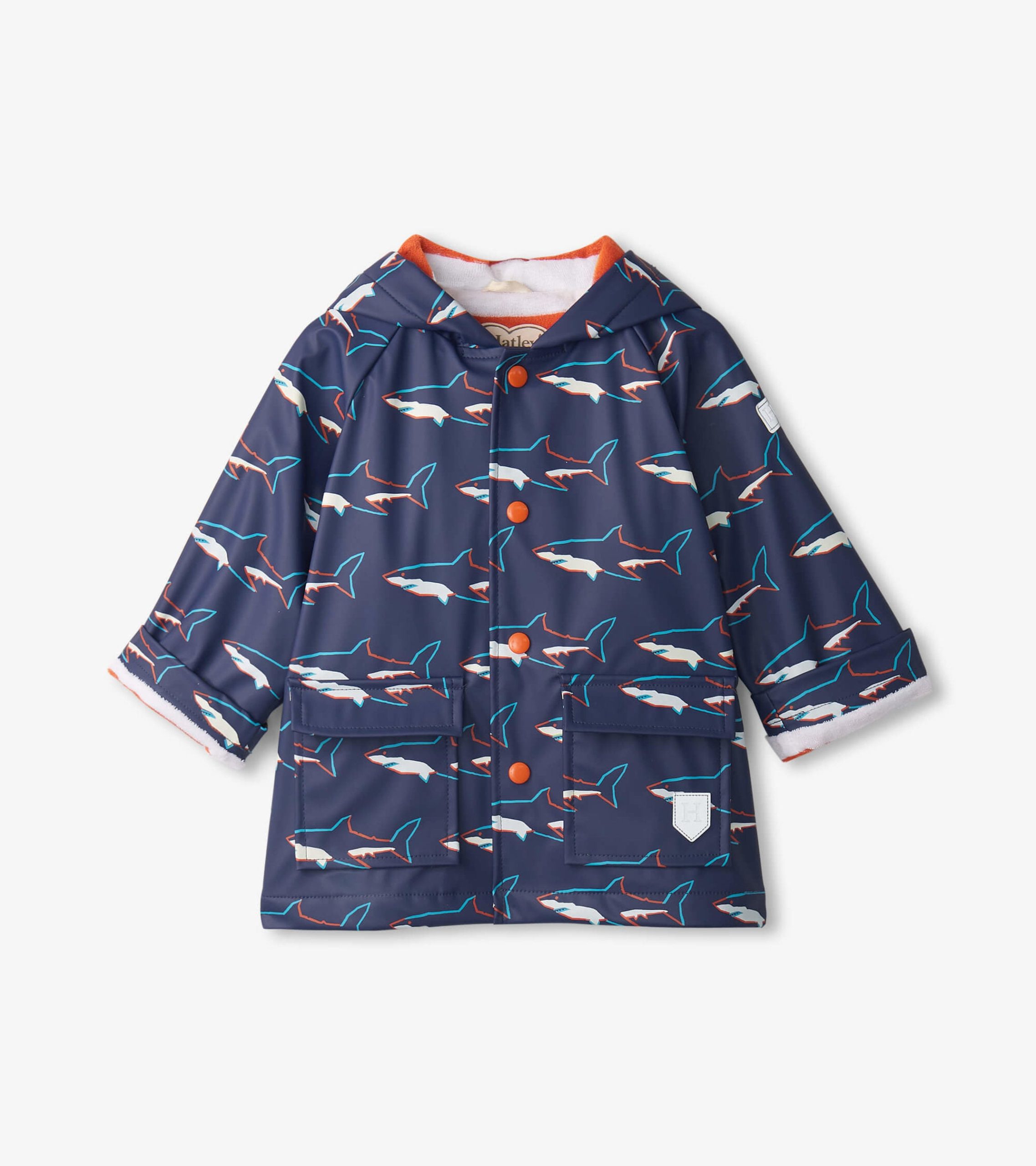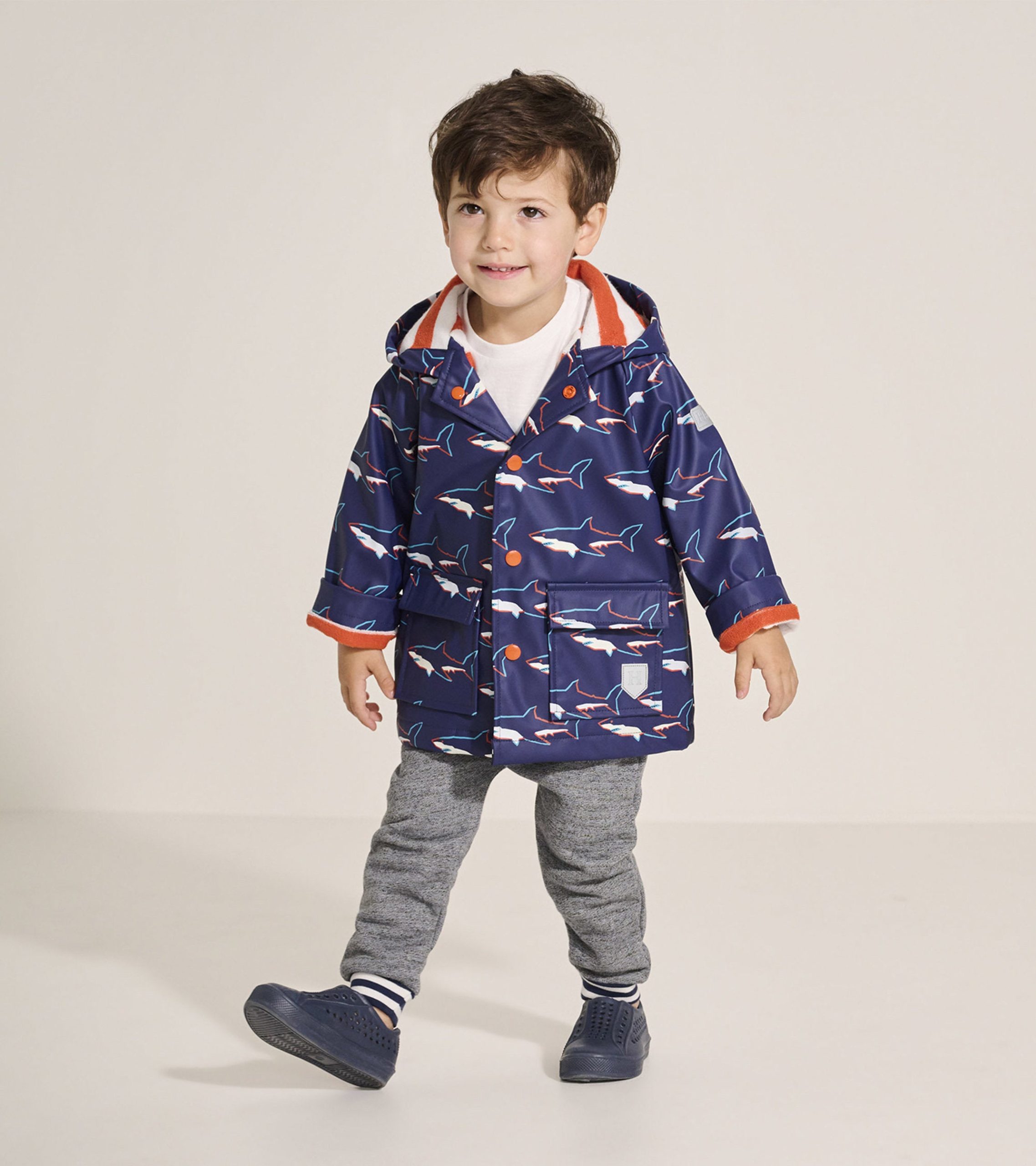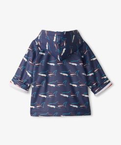Cure their rainy day blues with our water-resistant Boys Sharks Colour Changing Raincoat! Whether your little one is splashing through puddles or dancing in the rain, our PVC-free design offers ultimate splash protection and comfort, while the durable construction ensures long-lasting use.