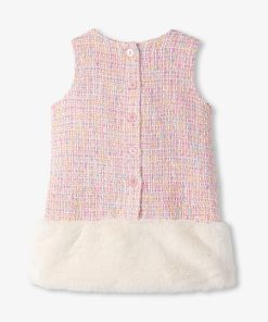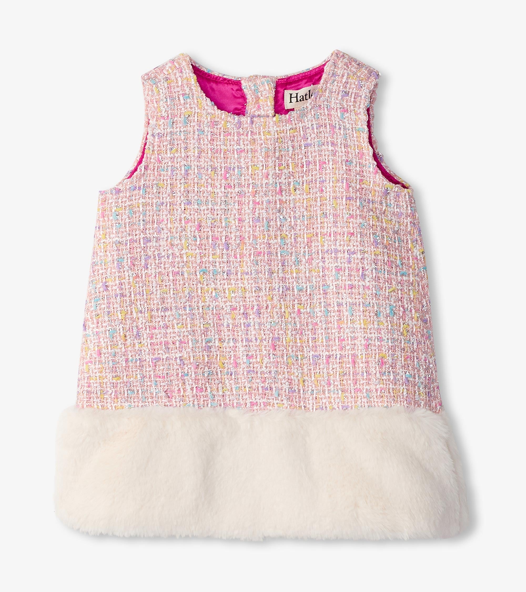 The Baby & Toddler Girls Aurora Pink Tweed Faux Fur Trim Dress is as cute as it is cozy. Made from soft polyester, this tweed dress features a faux fur trim, perfect for adding a touch of elegance to her little wardrobe.