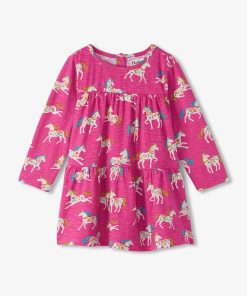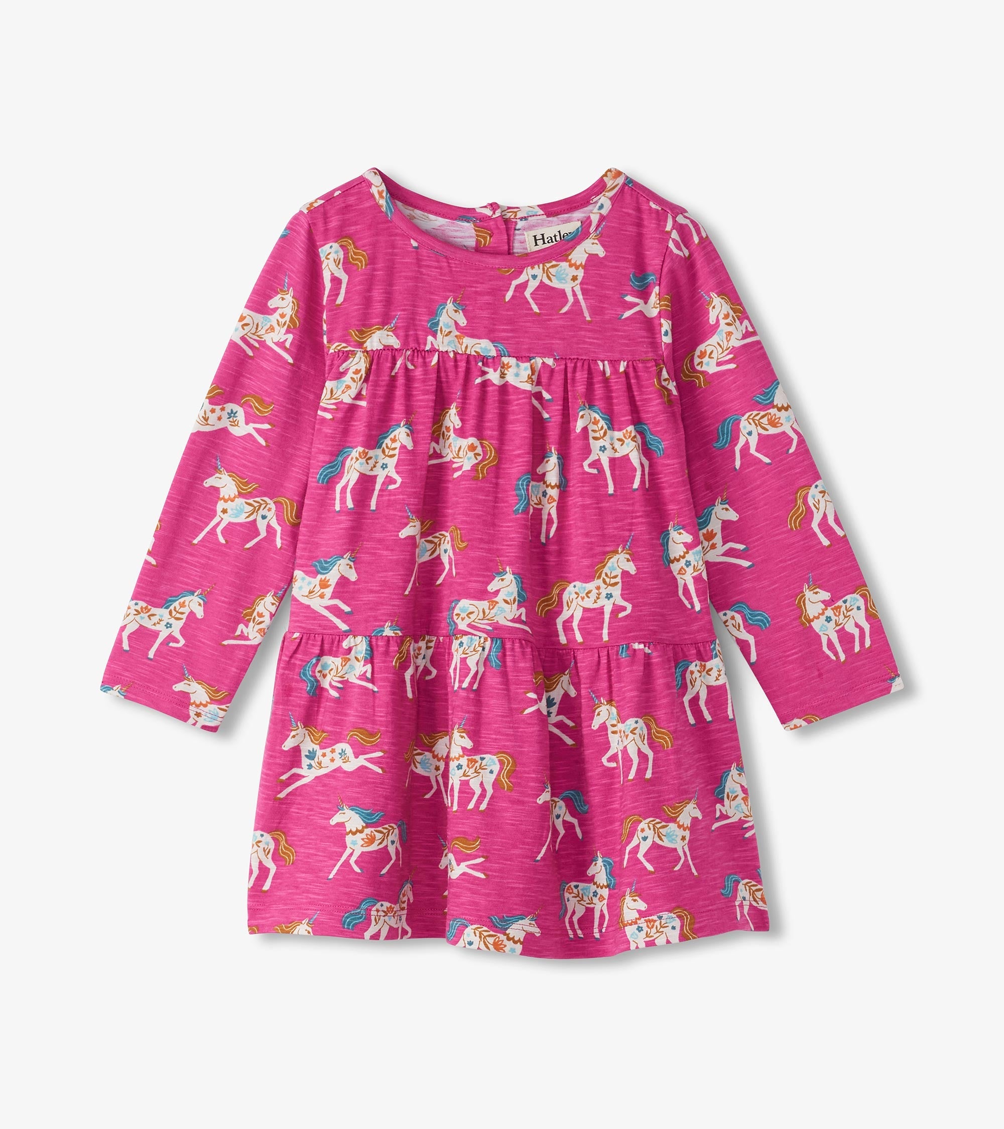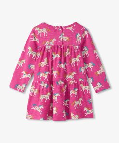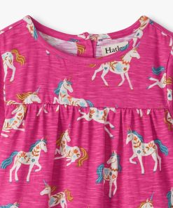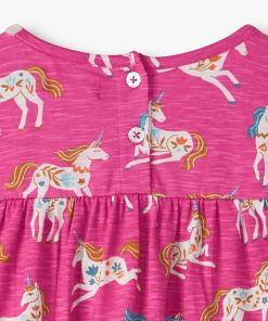 Dress her up in whimsy with the Baby & Toddler Girls Folksy Unicorns Gathered Tiered Dress! Made from soft cotton, this dress features enchanting unicorn prints and a tiered design. Perfect for twirling, it’s a magical outfit for her fall adventures.
