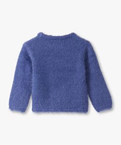 Cozy meets cute in the Baby & Toddler Girls Kitty Cat Furry Sweater in Blue! Made from a super soft and stretchy hairy nylon blend, this fuzzy long-sleeve sweater keeps her warm and comfy all day. The round neckline and plush texture offer an extra snuggly feel, while the charming design, a large white kitty knitted into the front with a fuchsia collar, turquoise and purple eyes, and pink whiskers, adds playful personality. Set against a soothing blue background, it’s a purr-fect piece for chilly weather with just the right mix of fun and flair.