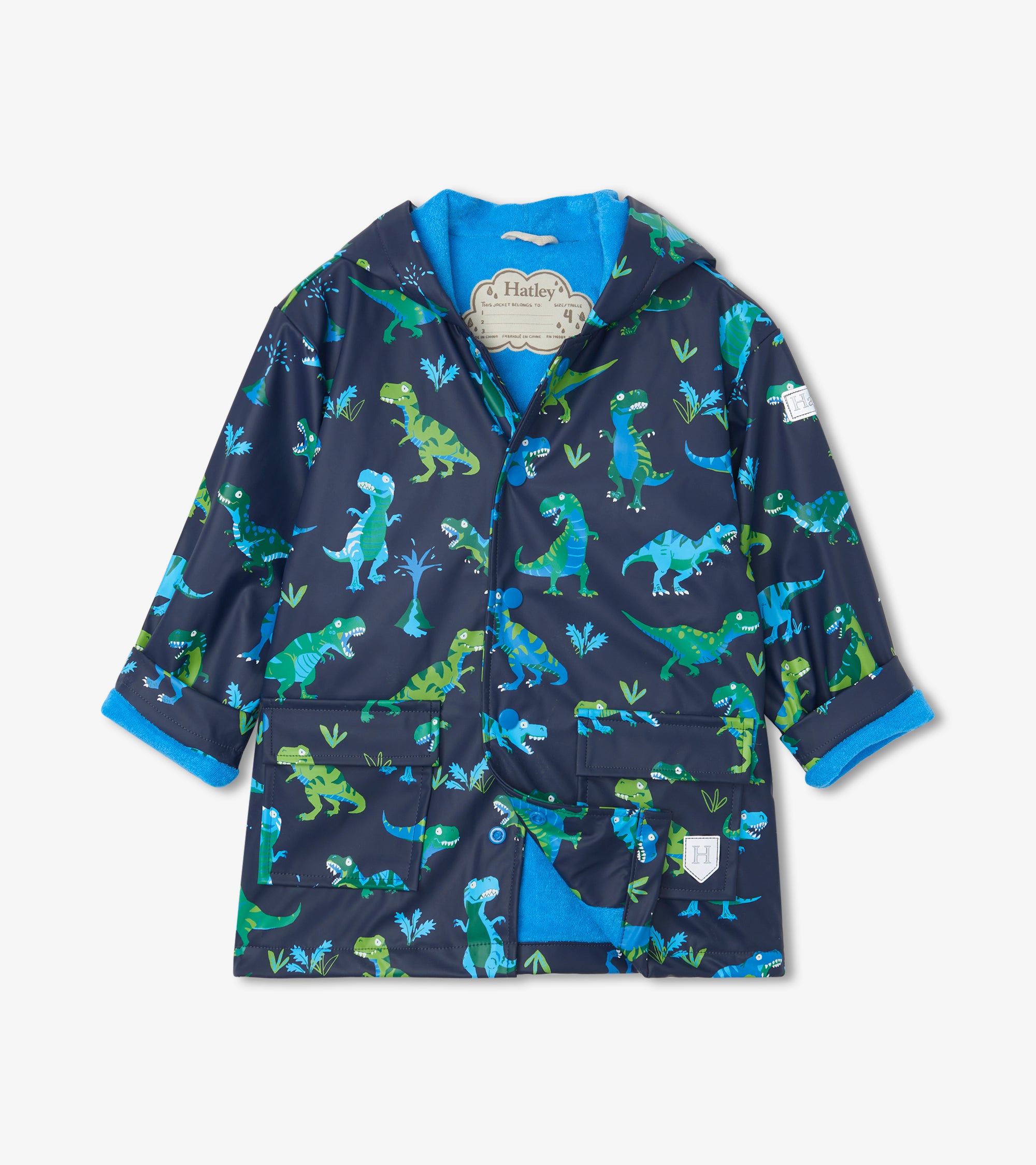 Make a splash on gloomy days with this fun, water-resistant raincoat! The bold dinosaur print and soft fabric ensure your little explorer stays comfortable and dry. With durable construction, it’s made to handle all of your child’s outdoor adventures in the rain.