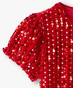The Girls Red Sequins Velvet Dress is a showstopper for any holiday celebration! With its shimmering sequins and luxuriously soft velvet, she’ll feel like a festive princess at family gatherings or holiday parties. The rich polyester fabric ensures comfort while she shines, and the vibrant red hue is perfect for the season. Pair it with tights and sparkly shoes to complete her holiday look!