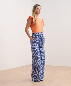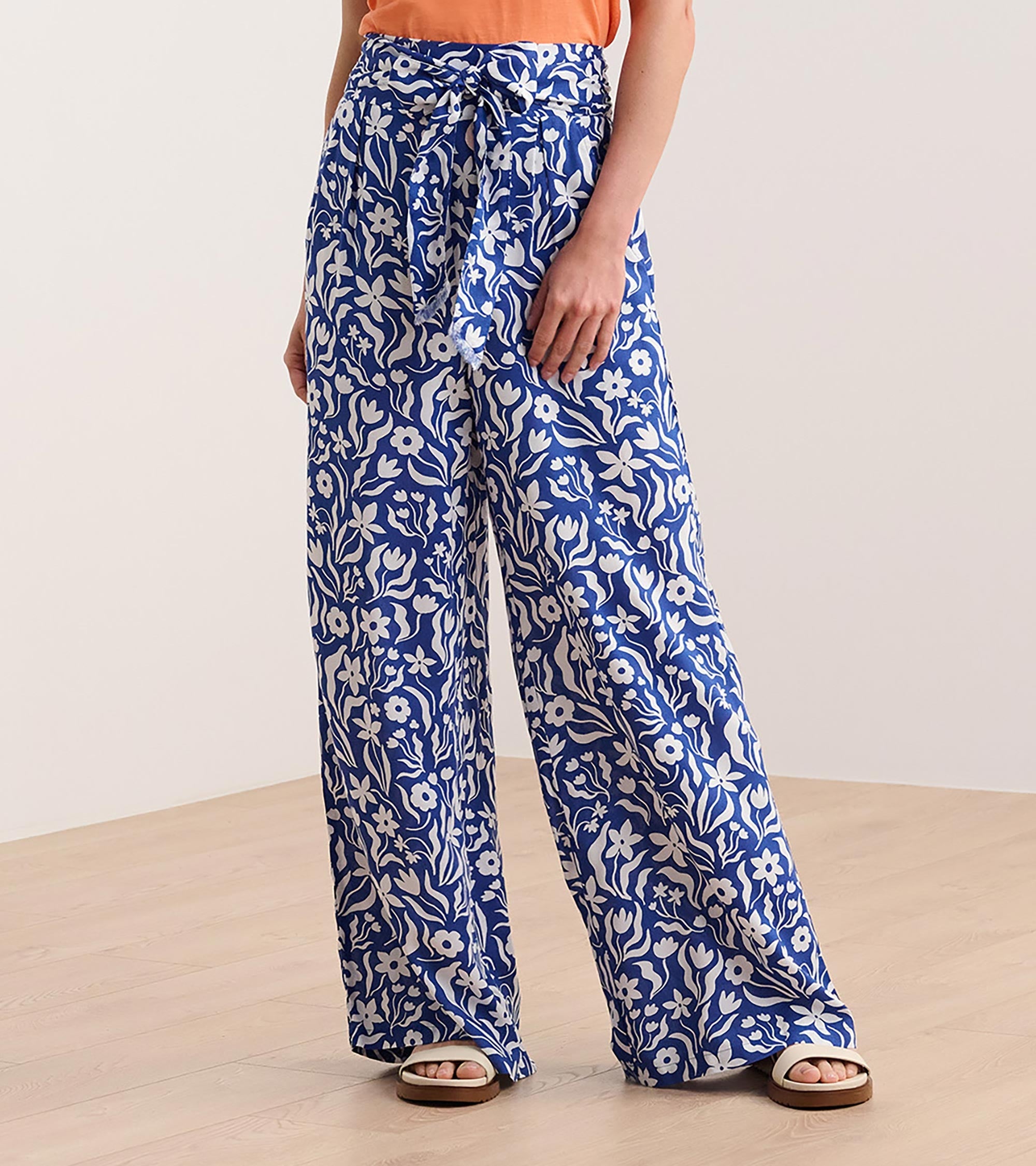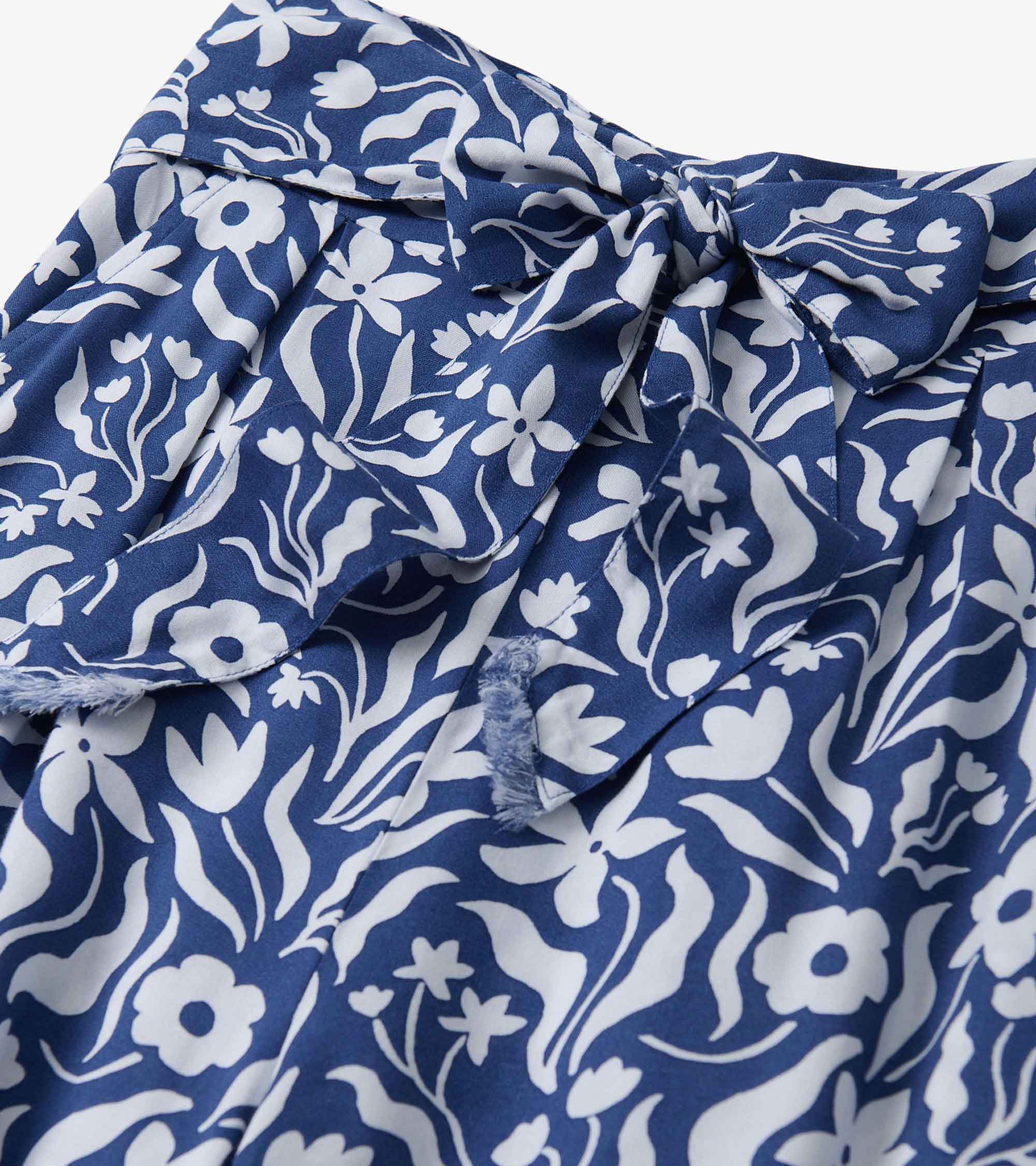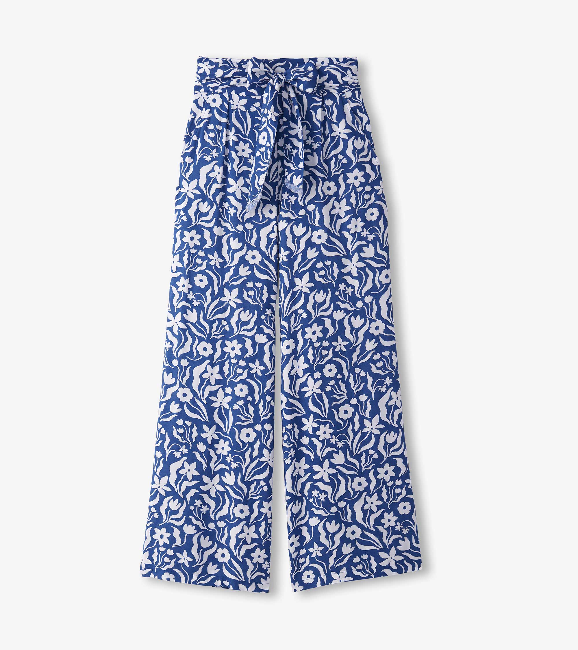 The Belted Wide Leg Pants in Wavy Flowers combine comfort and modern elegance. Crafted from soft rayon, they feature a wide-leg silhouette, smocking on the back waist, front slash pockets, inverted box pleats, and a stylish tie front. The floral-inspired wavy pattern adds a creative flair, making these pants a standout piece. Style them with a simple neutral blouse for an effortlessly chic ensemble.