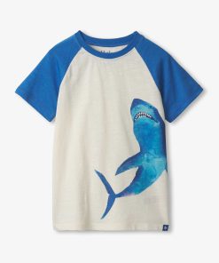 Dive into adventure with the Boys Blue Shark Raglan T-Shirt! Crafted from breathable cotton, this tee features bold shark graphics and a sporty raglan design. Perfect for active days, it pairs effortlessly with jeans or shorts for a cool, casual look.