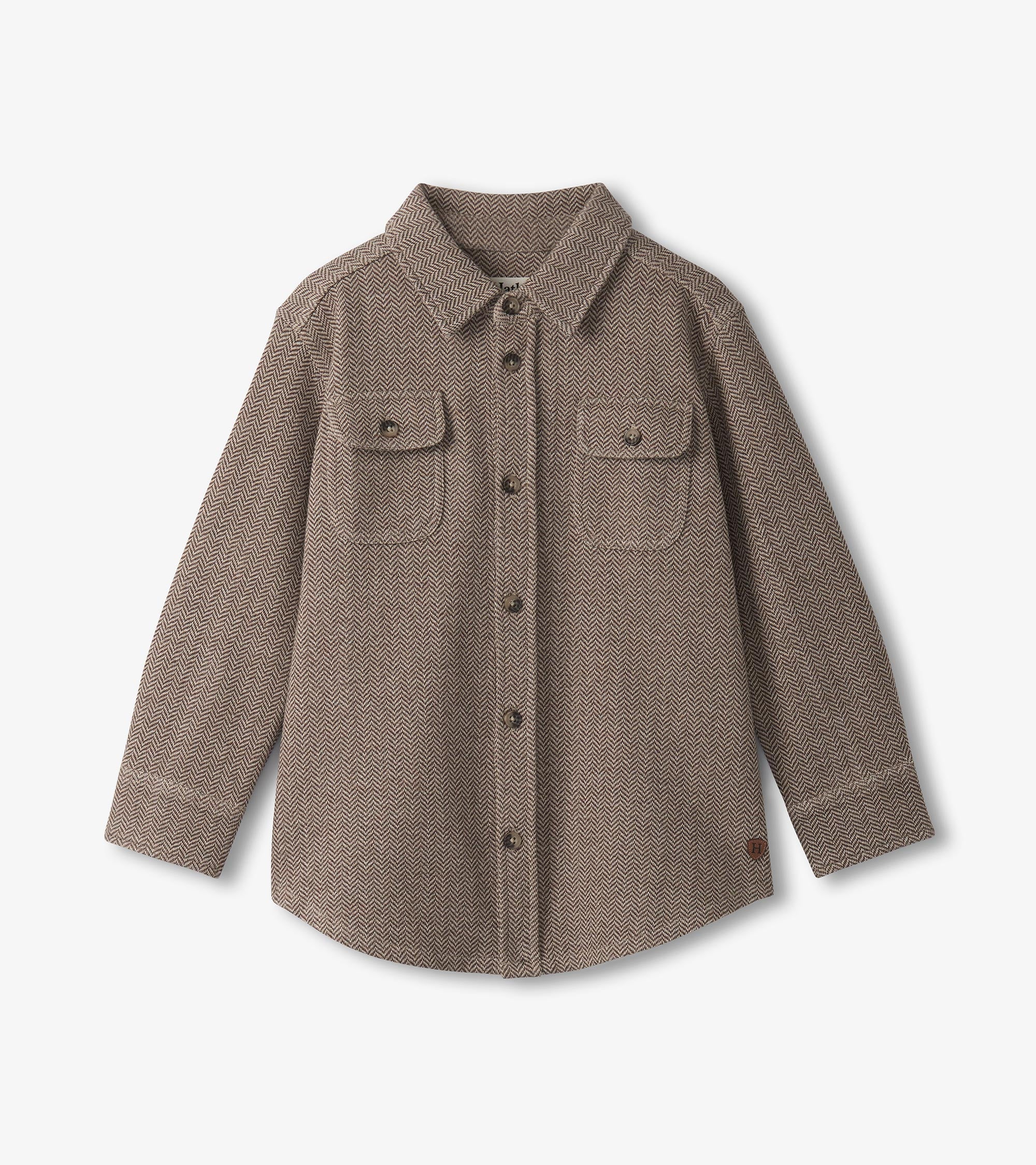 The Boys Brown Sugar Herringbone Button Down Shirt in Brown blends classic style with everyday comfort. Crafted from a soft double-knit herringbone fabric, this shirt features a rich mix of dark and light brown tones in a timeless pattern. Designed with long sleeves, a two-piece collar with a stand, front flap chest pockets with functional buttons, and a curved hem, it’s both polished and practical. It’s a heritage-inspired piece with modern-day versatility.