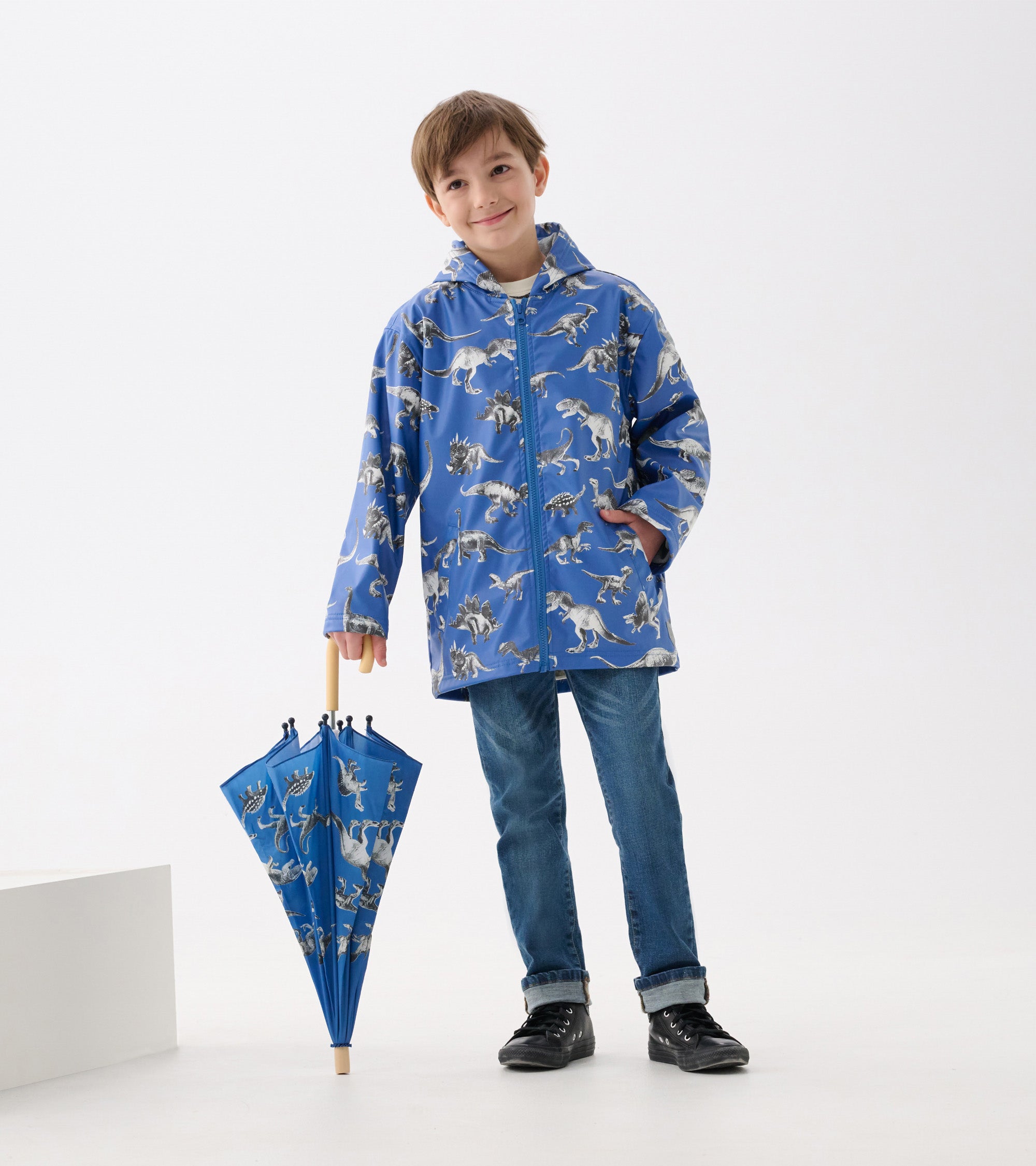 Adventure-ready for rainy days, the Boys Dino Extinction Zip-Up Rain Jacket is a roar-worthy choice! Made from durable polyester, this jacket features bold dinosaur graphics that bring prehistoric fun to wet weather. Lightweight and water-resistant, it’s designed for easy layering with a zip-up front and cozy hood. Perfect for young explorers who love to stomp through puddles in style.