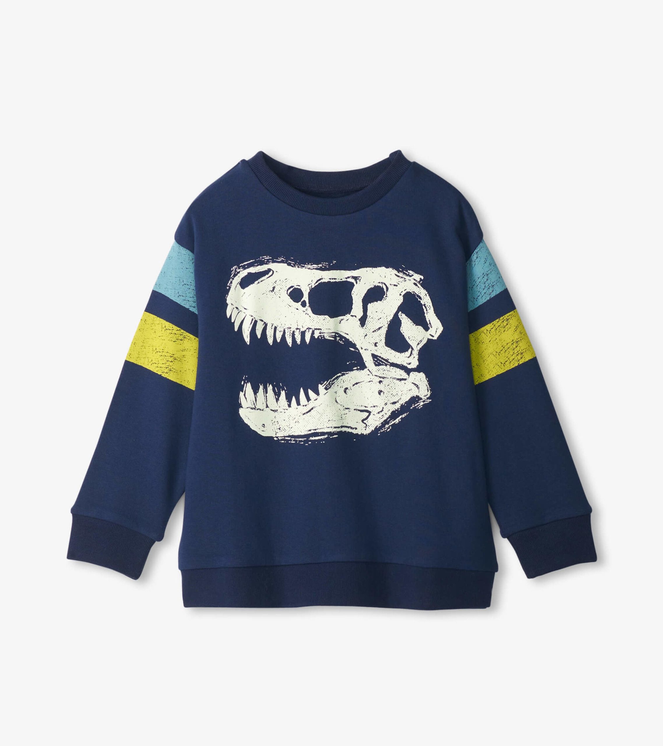 Roar into comfort with the Boys Dino Glow Pullover Sweatshirt! Made from cotton, this sweatshirt features a dino-mite glow-in-the-dark design that’s sure to be the highlight of sleepovers and campouts.