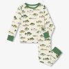 Plunge into prehistoric pool play with our boys dino stripes swim trunks! These white trunks feature blue stripes, a light green waist, and an all-over design of blue dinosaur silhouettes. Perfect for little dino lovers digging for fossils at the beach!