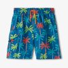 Plunge into prehistoric pool play with our boys dino stripes swim trunks! These white trunks feature blue stripes, a light green waist, and an all-over design of blue dinosaur silhouettes. Perfect for little dino lovers digging for fossils at the beach!