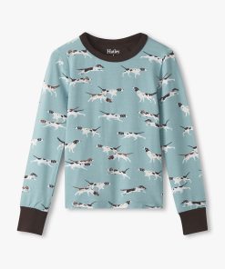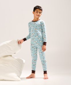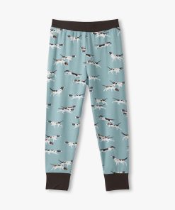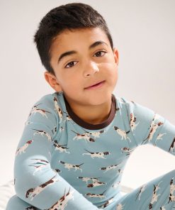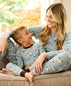 A dog’s best friend needs pajamas too! Our Boys Hunting Dogs Bamboo Pajama Set in Blue are made from buttery-soft stretch bamboo. This two-piece set features a muted teal backdrop with adorable light and dark brown hunting dogs. Long sleeves, full-length bottoms, a wide elastic waistband, and rich brown cuffs offer a snug yet flexible fit. And here’s the best part, this style comes in a matching women’s set, making it the perfect Mommy n’ Me duo for bonding in comfort and style.
