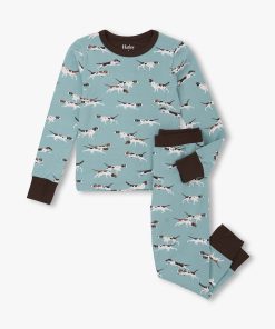 A dog’s best friend needs pajamas too! Our Boys Hunting Dogs Bamboo Pajama Set in Blue are made from buttery-soft stretch bamboo. This two-piece set features a muted teal backdrop with adorable light and dark brown hunting dogs. Long sleeves, full-length bottoms, a wide elastic waistband, and rich brown cuffs offer a snug yet flexible fit. And here’s the best part, this style comes in a matching women’s set, making it the perfect Mommy n’ Me duo for bonding in comfort and style.