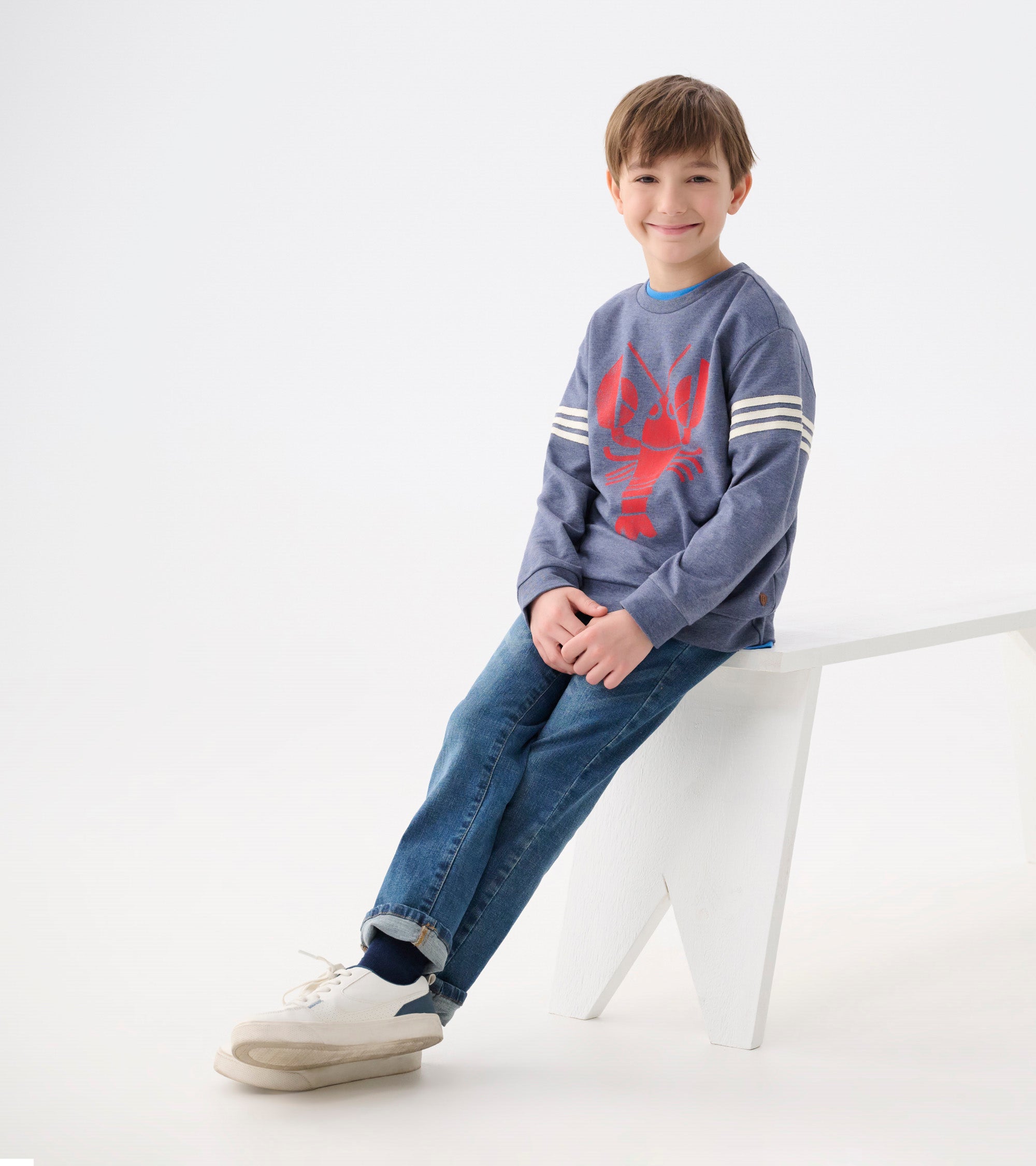 Keep it cool and coastal with the Boys Lobster Pullover Sweatshirt! Crafted from a cotton-polyester blend, this sweatshirt features bold lobster graphics that add a fun, nautical vibe. Soft, cozy, and lightweight, it’s perfect for layering during cooler days. Ideal for seaside adventures or everyday play!