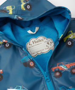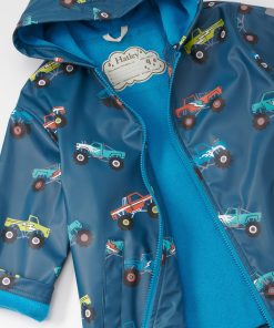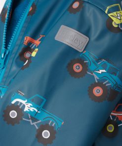 Gear up for rainy-day fun with the Boys Monster Trucks Zip-Up Rain Jacket! This jacket features a bold monster truck design and a sturdy water-resistant finish. Perfect for keeping your little truck lover dry and ready for adventure.