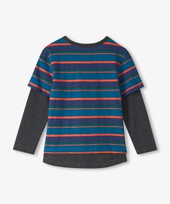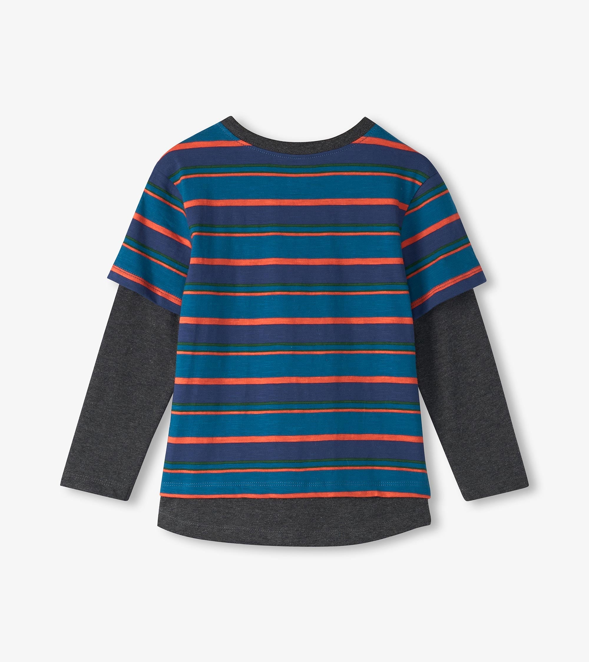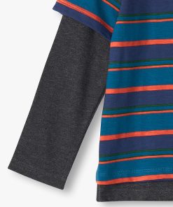 The Boys Moroccan Blue Fooler Long Sleeve T-Shirt is perfect for the future skater boy in your home. This smooth organic cotton tee features a layered look with its fooler sleeves and vibrant blue hue. Perfect for the fall, it adds a stylish edge and will be an effective layer when trying to keep him warm.