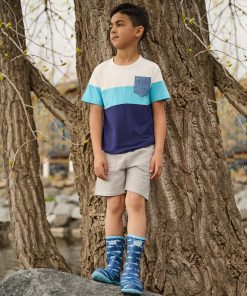 Add a modern twist to his wardrobe with the Boys Patriot Blue Colour Block Bamboo T-Shirt! This stylish tee features a cool color block design and is made from soft, stretchy bamboo fabric for ultimate comfort. Perfect for school, play, or casual outings, it’s a standout piece he’ll love wearing.