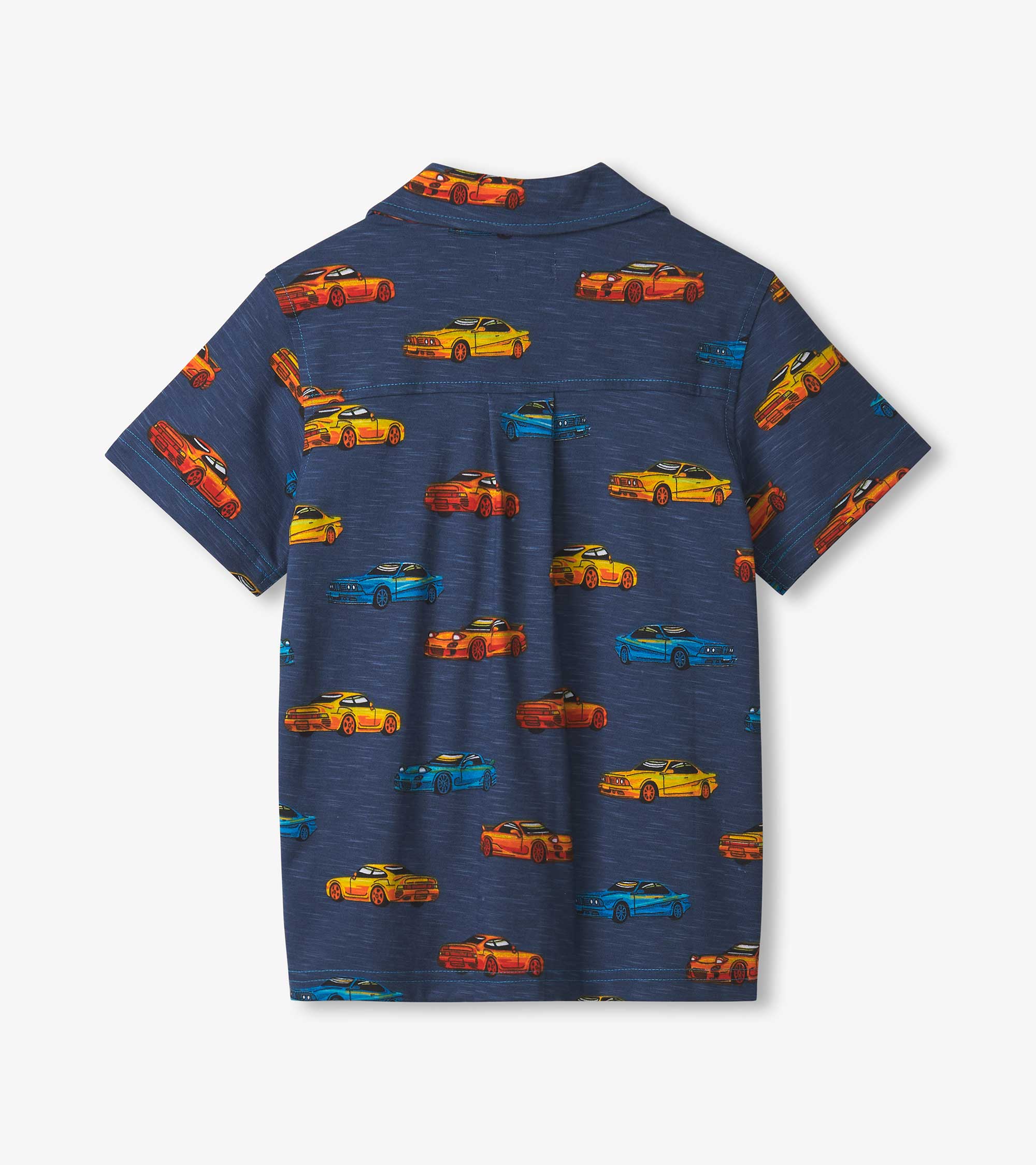 Add some speed to his style with the Boys Sport Cars Jersey Button Down! This lightweight cotton shirt features a bold race car print that’s perfect for little car enthusiasts. Comfortable and versatile, it’s great for dressing up or keeping it casual.
