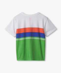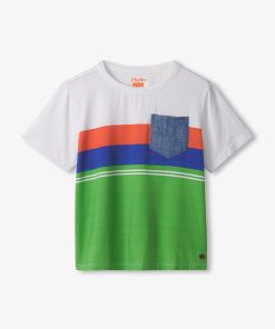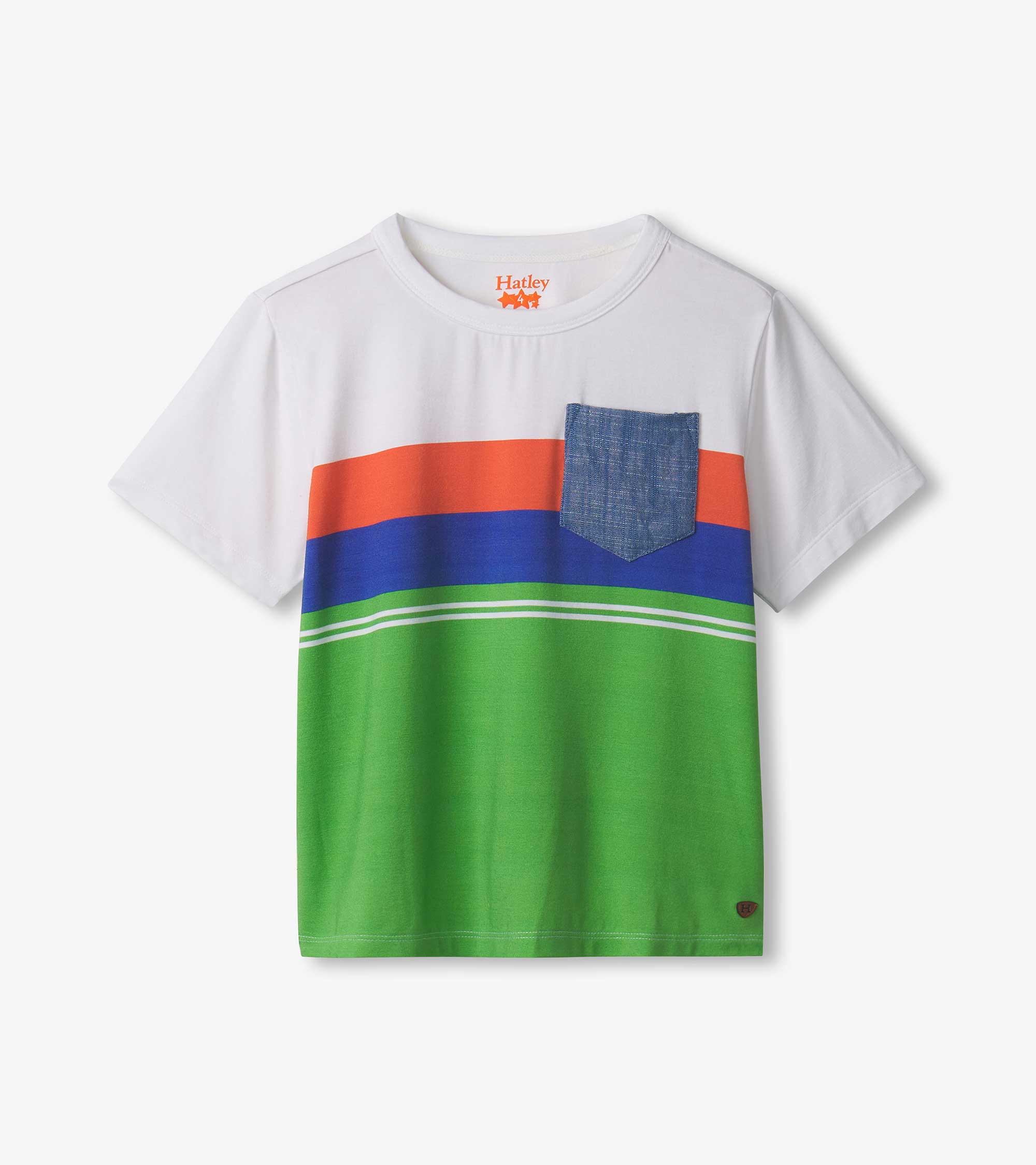 The Boys Spring Colour Block Bamboo T-Shirt brings a fresh twist to his wardrobe! Featuring a fun color block design in soft bamboo fabric, this tee is lightweight, stretchy, and perfect for casual outings or active play.
