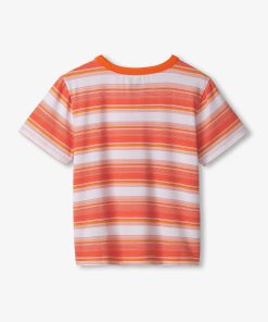 Brighten his wardrobe with the Boys Striped Orange Bamboo Tee! Crafted from soft bamboo fabric, this tee features cheerful orange stripes and a stretchy, comfortable fit. Ideal for active days, it pairs easily with shorts or jeans for a stylish look.