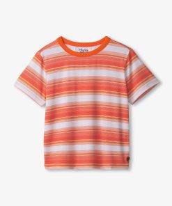 Brighten his wardrobe with the Boys Striped Orange Bamboo Tee! Crafted from soft bamboo fabric, this tee features cheerful orange stripes and a stretchy, comfortable fit. Ideal for active days, it pairs easily with shorts or jeans for a stylish look.