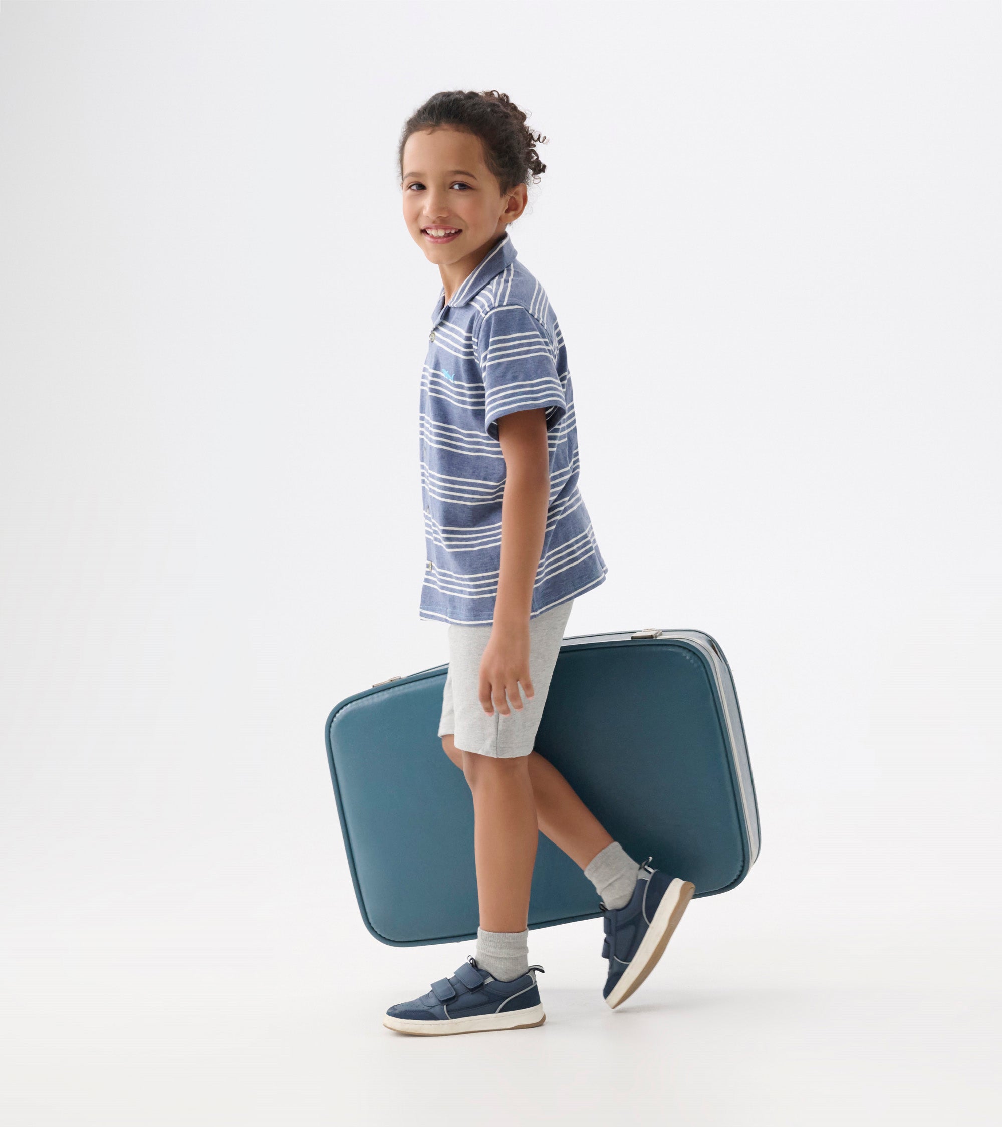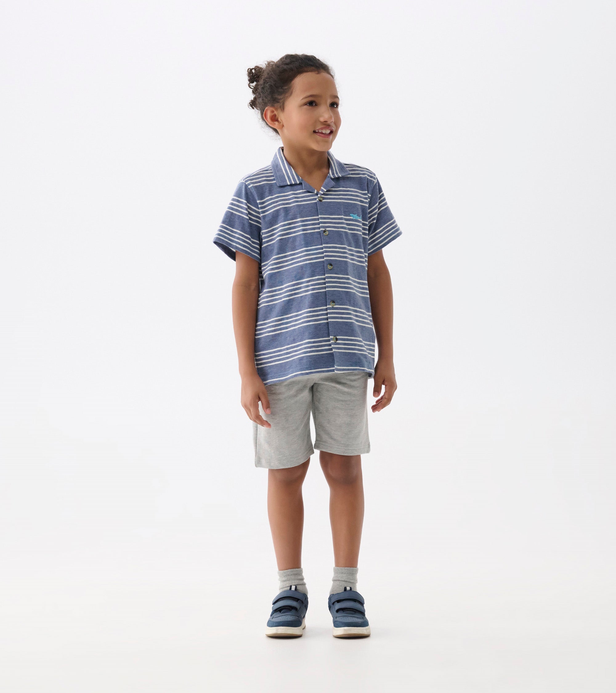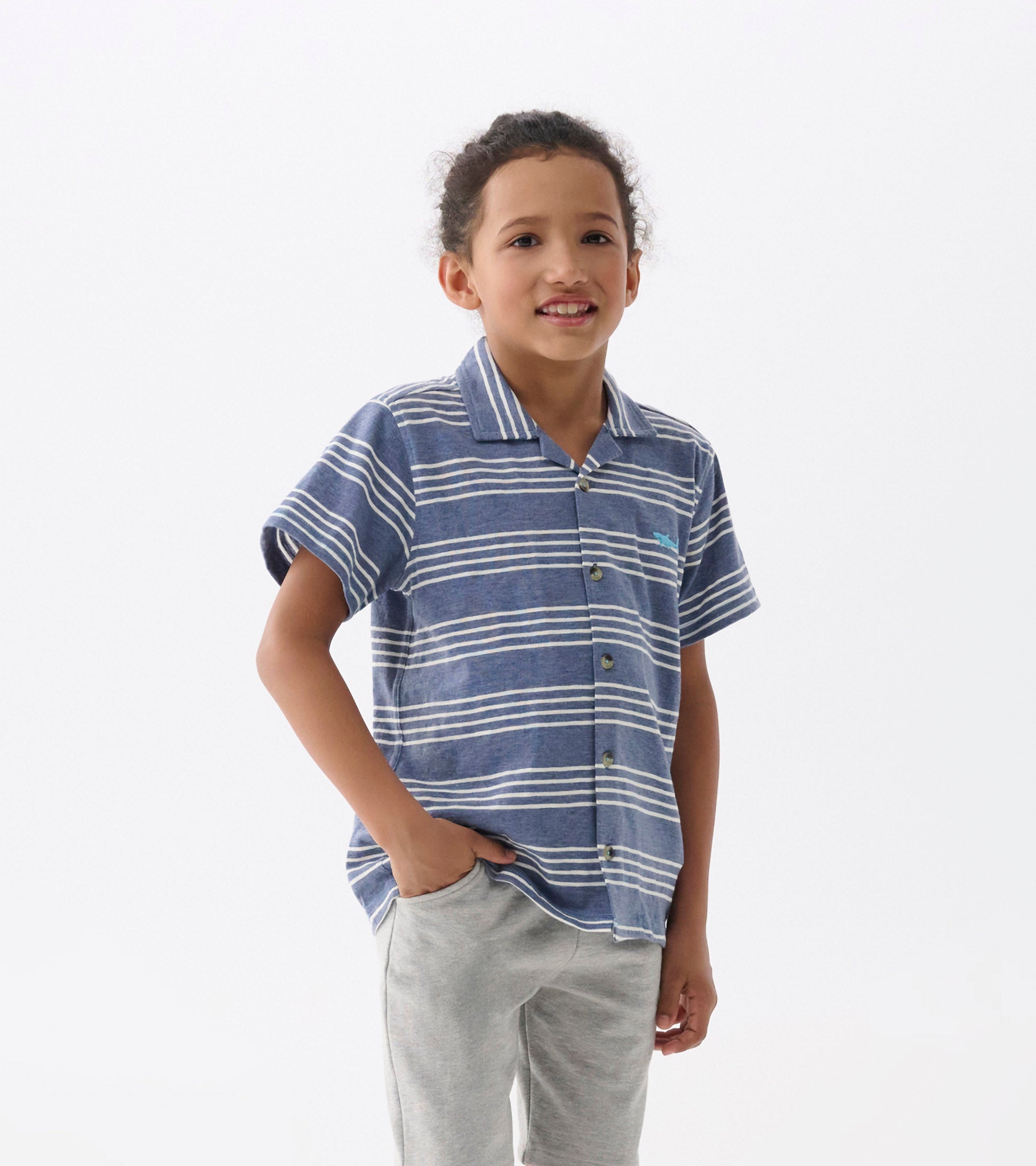 The Boys Striped Nautical Jersey Button Down is the perfect mix of casual and classy! Made from crisp, breathable cotton, this shirt is ideal for dressing up without sacrificing comfort. The timeless nautical stripes bring a seaside vibe to any occasion, from family outings to picture day. The button-down design and relaxed fit make it a go-to choice for polished but playful style.