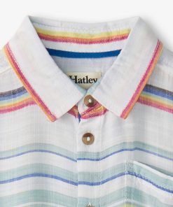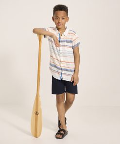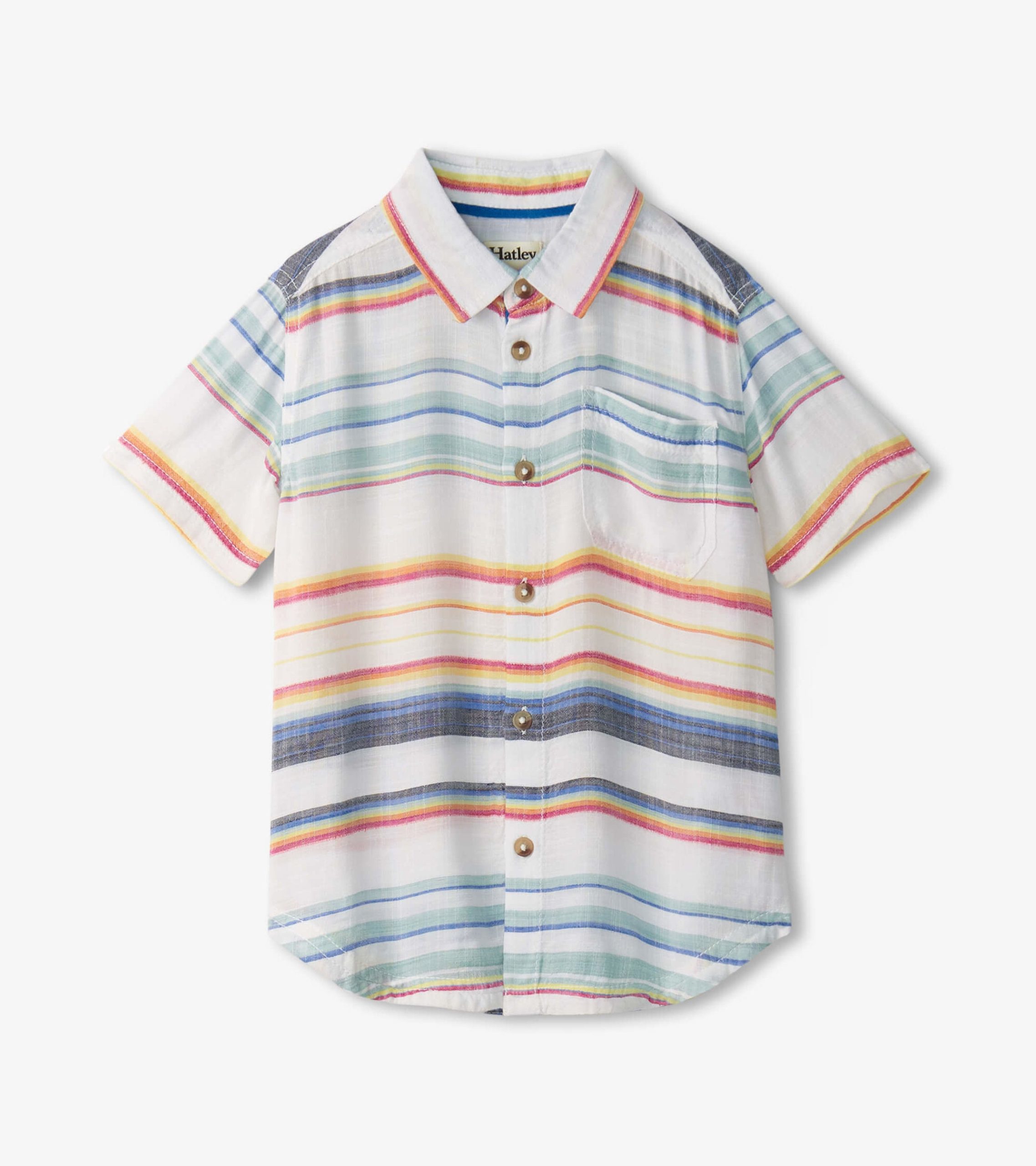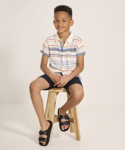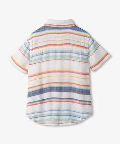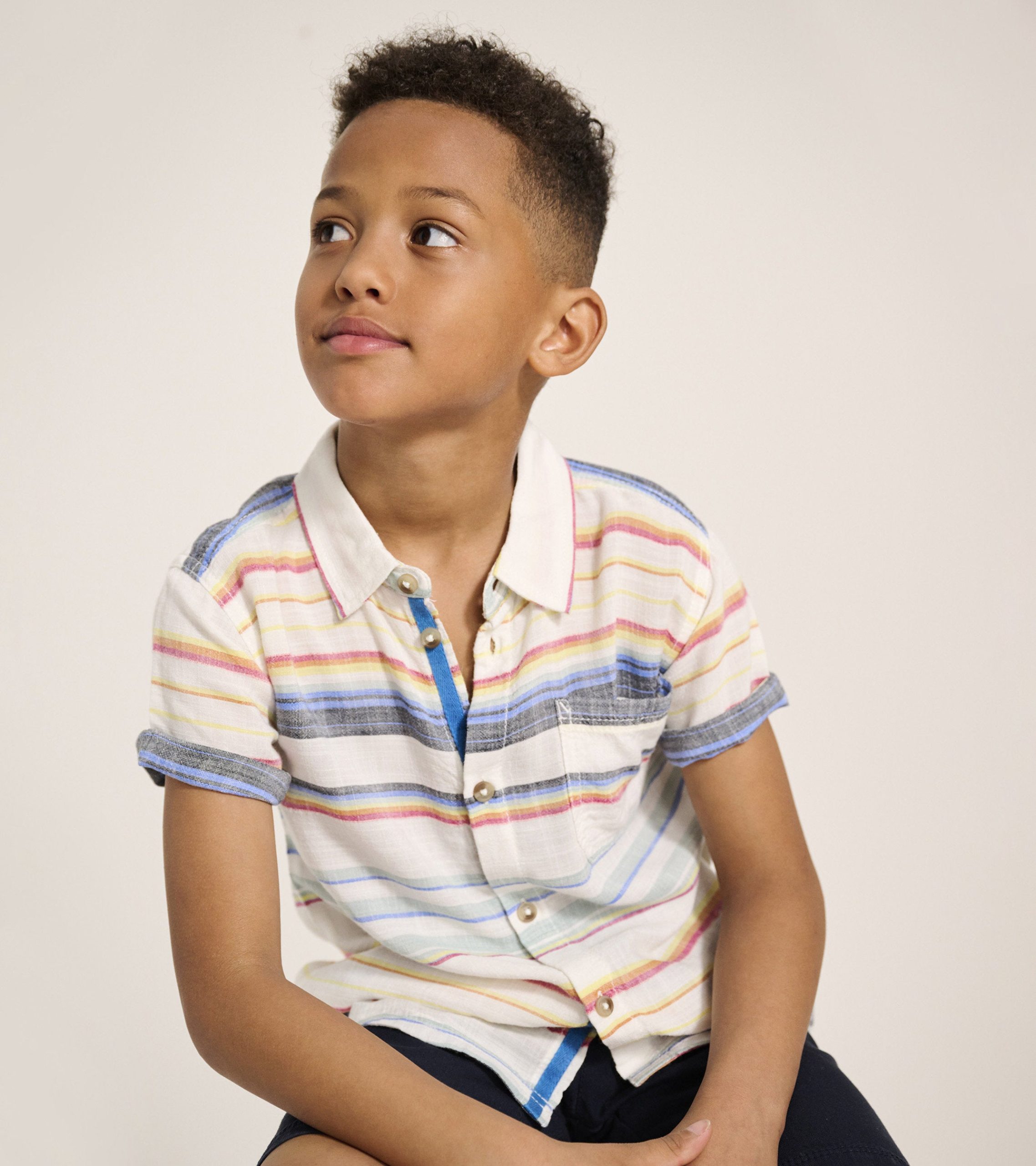 Dress him up in our Boys Summer Stripe Short Sleeve Button Down, and he’ll be the coolest kid at any summer event. This lightweight viscose shirt features a trendy stripe pattern that pairs perfectly with shorts.