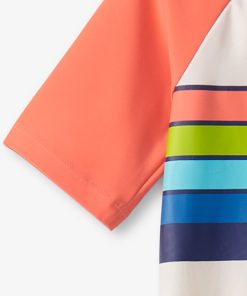 Catch the wave of style with our Boys Surfer Stripes Short Sleeve Rashguard. Crafted from durable nylon and stretchy spandex, this rashguard is designed to protect your young surfer from the sun’s rays while he’s carving the waves. The dynamic stripes will make him the coolest dude on a surfboard.