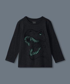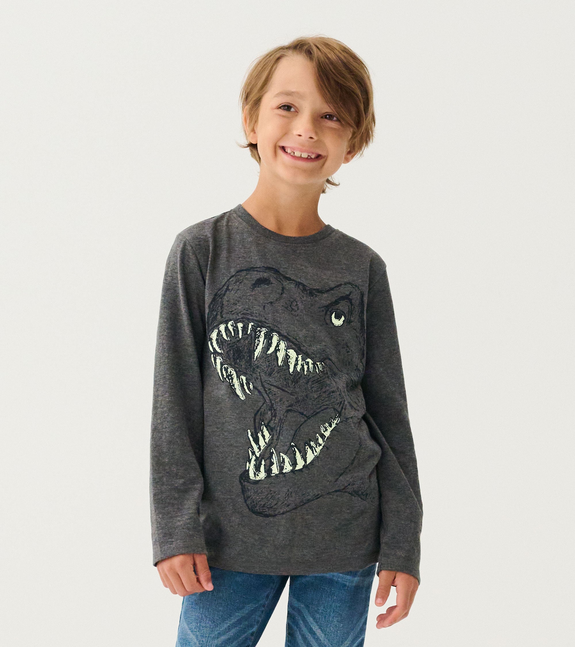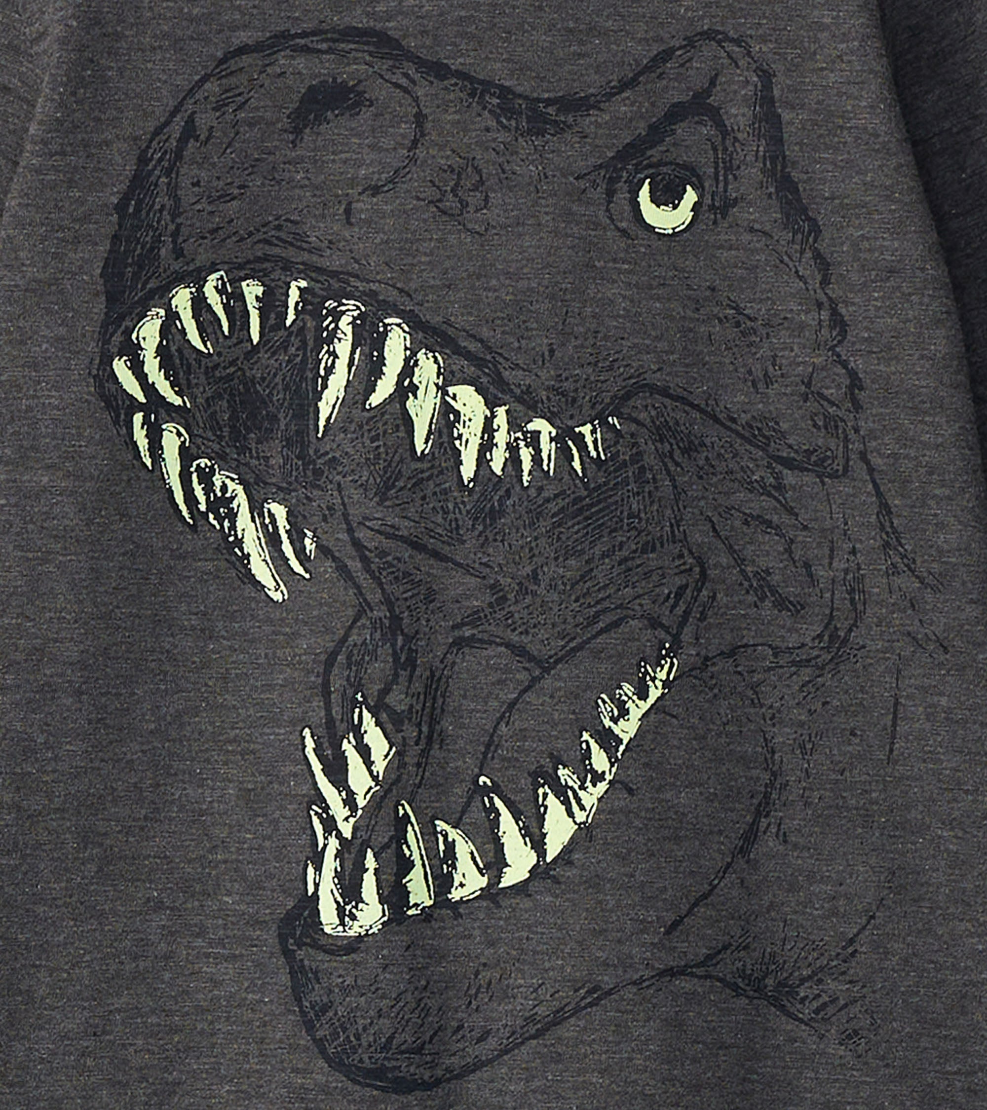 Light up the night with the Boys T-Rex Glow in the Dark Long Sleeve T-Shirt! This cotton-polyester blend tee features a fierce T-Rex graphic that glows in the dark, making it perfect for fun day-to-night wear.