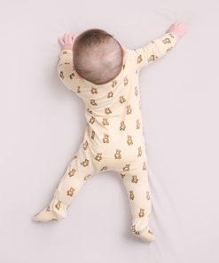 Cuddle up with the Baby Teddy Bears Footed Sleeper! Made from stretchy bamboo fabric, this sleeper is as cozy as a teddy bear hug. Featuring adorable bear prints, it’s a charming choice for nap times and bedtime alike.