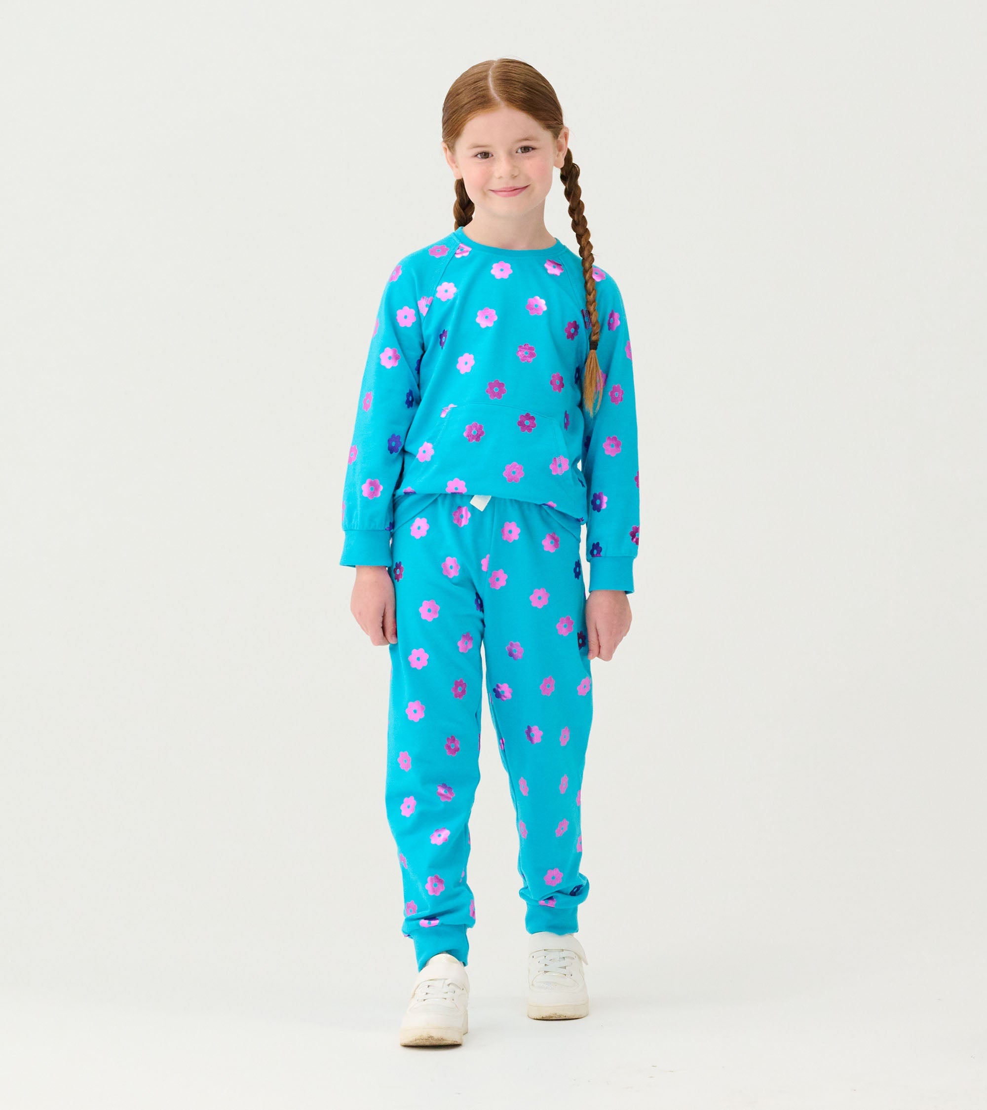 Blossom in comfort with the Girls Blossom Cuffed Track Pants! These cozy pants feature a lovely floral design and a soft cotton and polyester blend. Perfect for playtime or relaxing at home.