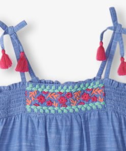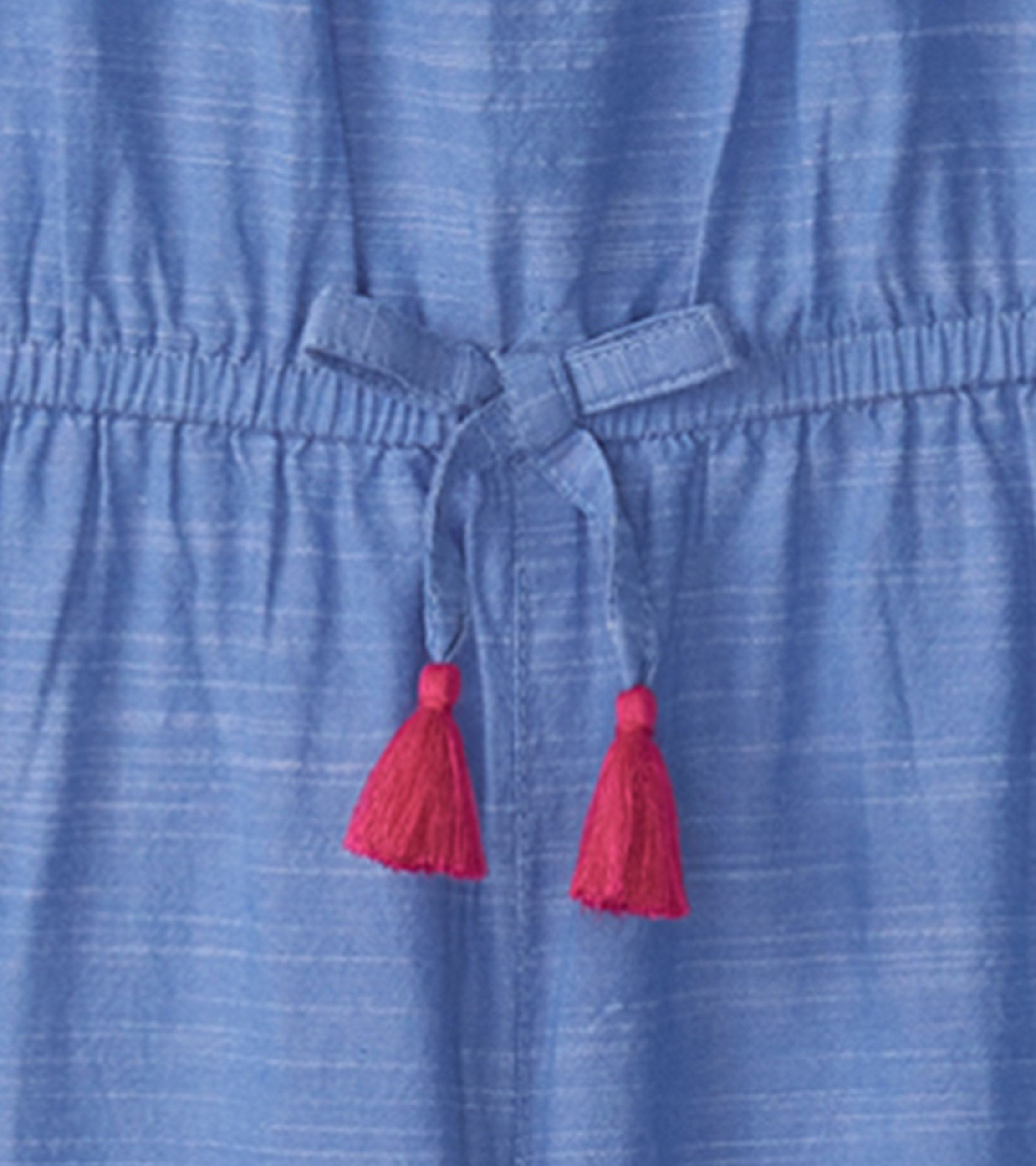Style meets play in our Girls Chambray Smocked Jumpsuit. Crafted from cotton, this jumpsuit is a go-to for effortless charm. Featuring smocked details that add a sweet vintage vibe, it’s the perfect one-and-done outfit for a picnic in the park or a playful day out.