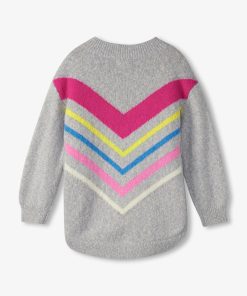 The Girls Chevron Stripe Chunky Sweater Tunic is a stylish and cozy addition to any wardrobe. Made with a blend of acrylic, cotton, and nylon, this tunic features trendy chevron stripes that are perfect for layering and staying snug all day long.