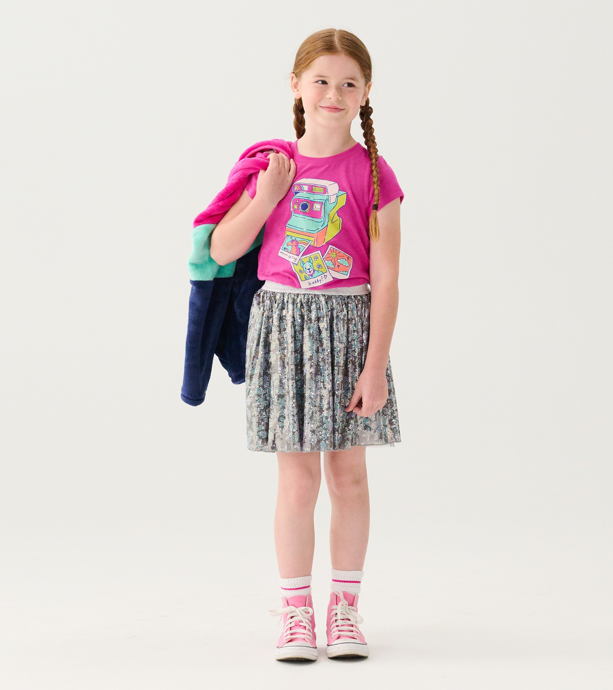 Add some sparkle to her step with the Girls Flower Shimmer Sequin Tulle Skirt! This polyester skirt features shimmering sequins and delicate tulle for a touch of elegance. Perfect for parties and special occasions, it’s a twirl-worthy addition to her fall outfits.