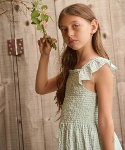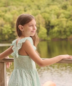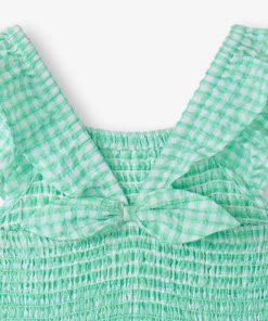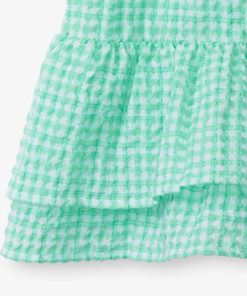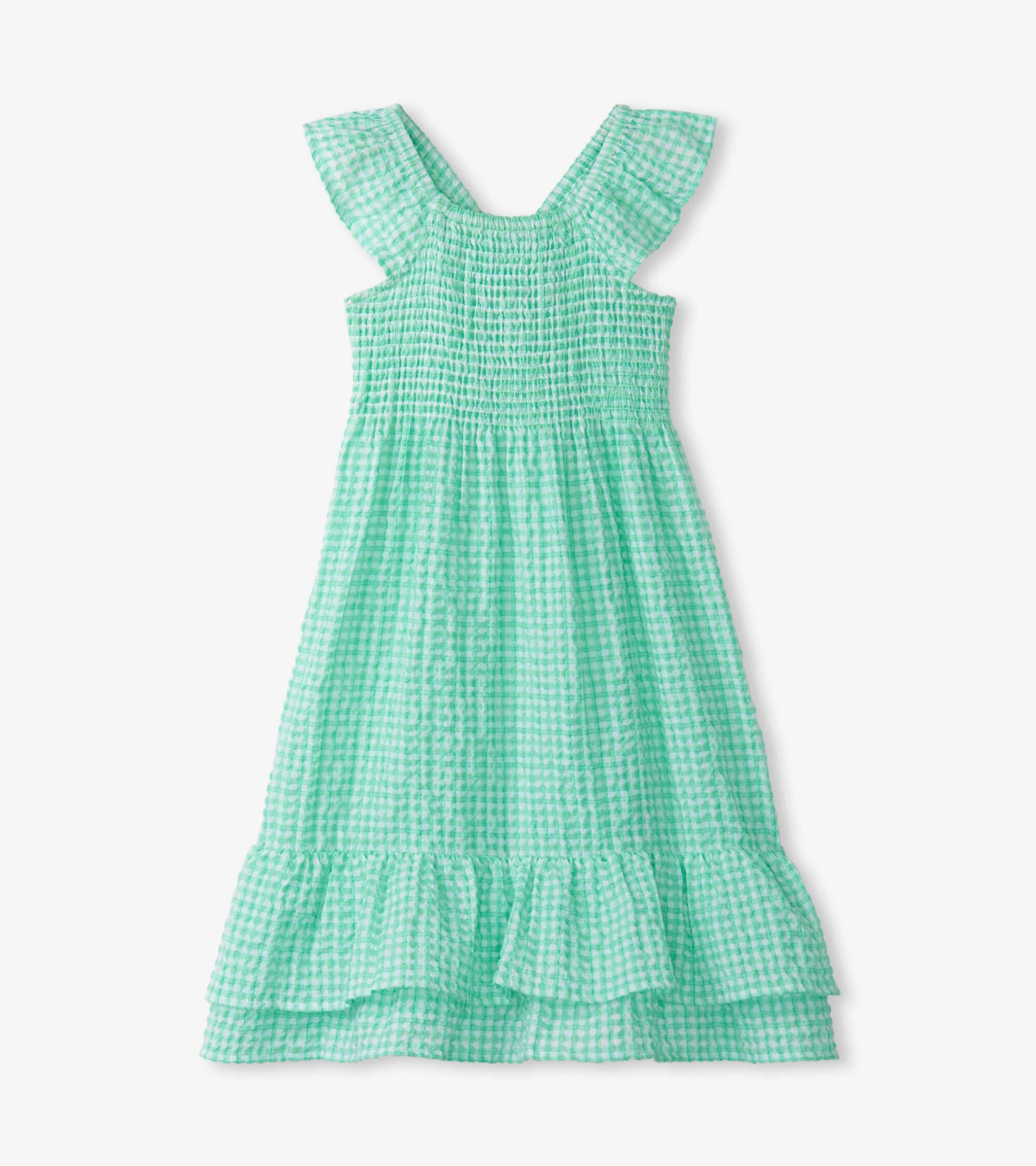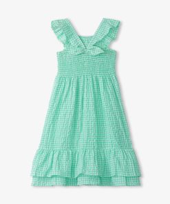 She’ll be picnic-perfect in our Girls Gingham Seersucker Smocked Dress. The cotton and polyester blend, paired with the timeless gingham pattern and seersucker texture, offers a classic summer look with a touch of sweetness.