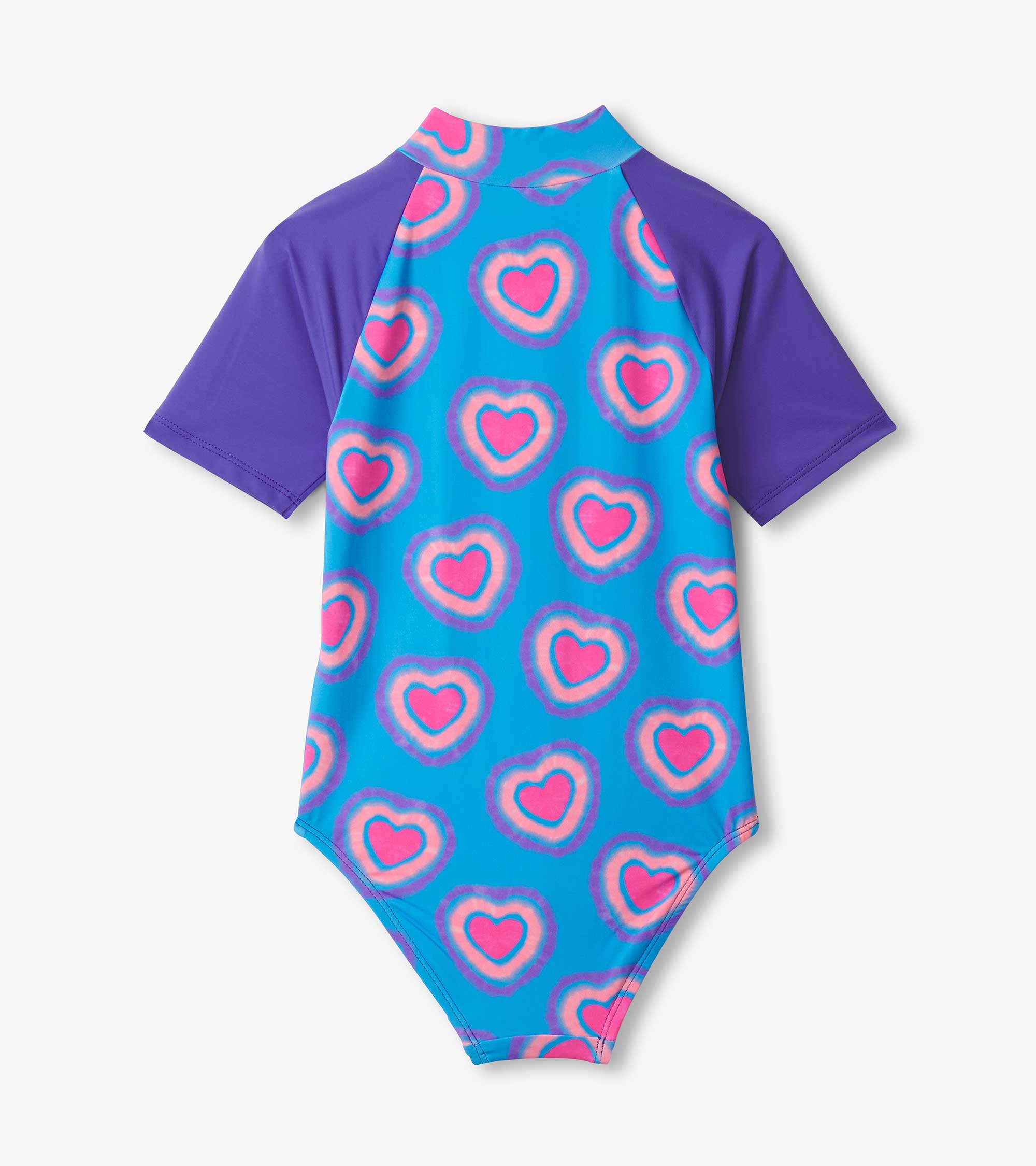 Light up her summer with the Girls Glowing Hearts One-Piece Rashguard! With its glowing heart design and sun-protective material, it’s the perfect blend of fun and functionality. Quick-drying and comfy for endless play!