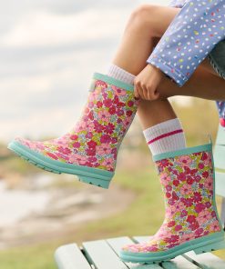 The Girls Groovy Flowers Matte Rain Boots are a rainy-day essential! Made from durable rubber, these boots feature cheerful floral patterns and a matte finish for a stylish look. Designed to keep little feet dry and comfortable, they’re perfect for puddle-jumping and outdoor adventures.