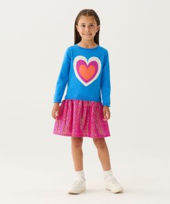 Dress her in whimsical style with the Girls Hearts Dropped Waist Sweater Dress! This cozy dress features a charming heart design. It’s perfect for keeping warm while looking cute and stylish.