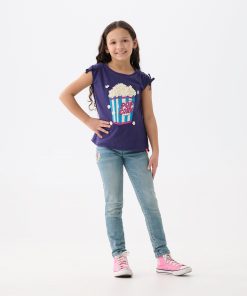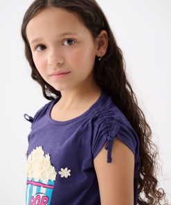 Pop into playtime with the Girls Popcorn Cinched Shoulder Top! This fun cotton tee features a cheerful popcorn graphic and playful cinched shoulder details, perfect for movie nights or outdoor adventures with friends.