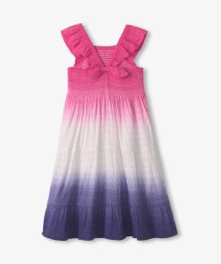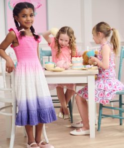 The Girls Purple Dip Dye Smocked Dress is a dreamy wardrobe addition! Made from lightweight cotton, this dress features a stunning dip-dye effect and a smocked bodice for a perfect fit. Ideal for family gatherings, playdates, or sunny adventures, it’s both stylish and comfortable.