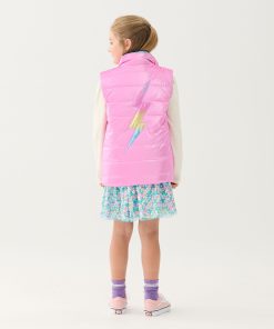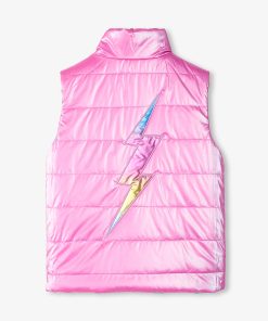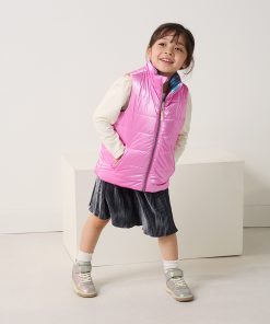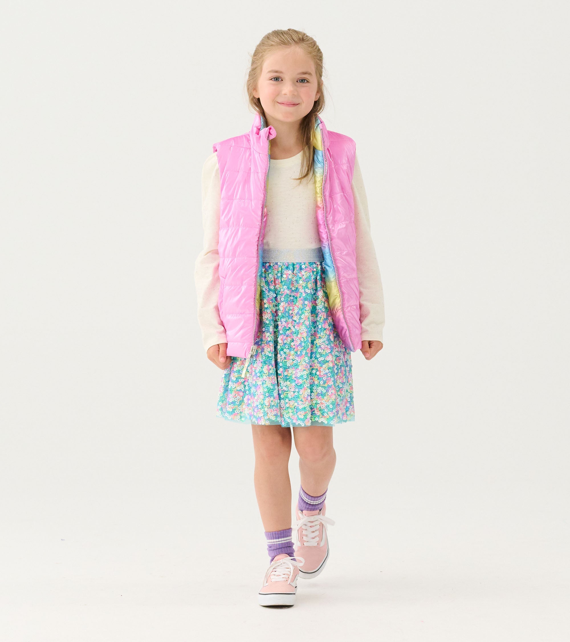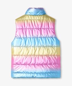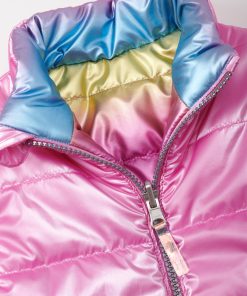 Shine bright with the Girls Rainbow Shine Reversible Quilted Vest! Made from polyester, this vest features a sparkling rainbow design on one side and a solid quilted look on the other. Cozy and stylish, it’s perfect for adding a splash of color to her fall outfits.