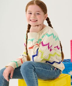 Add some color to her grey fall days with the Girls Rainbow Sweater! Made of smooth organic cotton, this sweater features a cheerful rainbow design that will make her smile from ear to ear. Cozy and colorful, it’s perfect for layering up during Autumn.