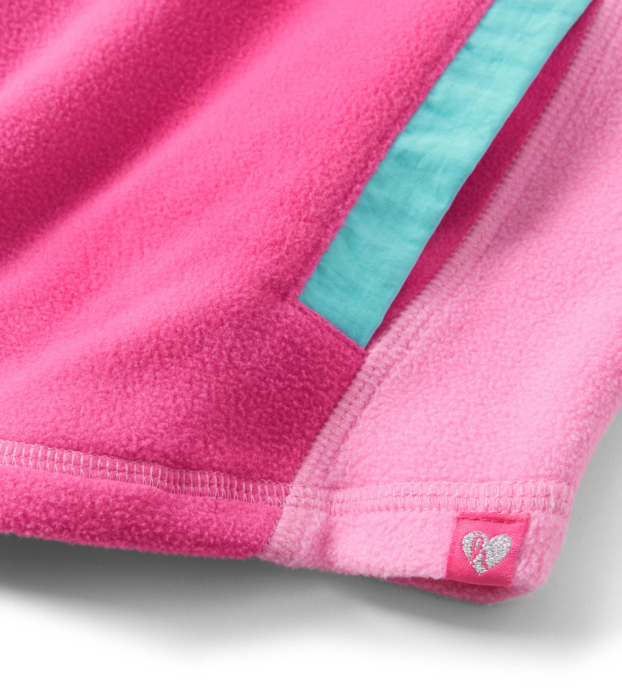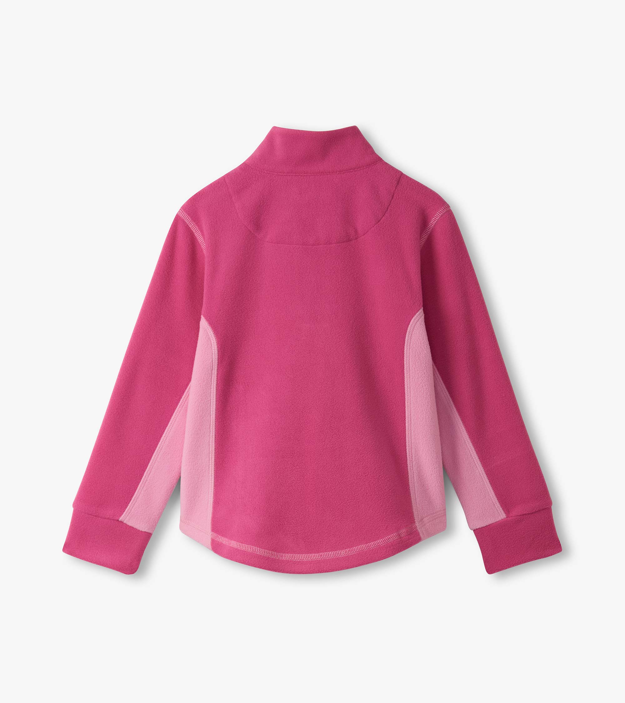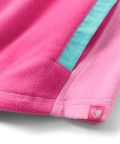 Designed for comfort and colour, the Girls Raspberry Rose 1/4 Zip Mockneck in Pink is made from lightweight fuzzy fleece and features a sporty quarter-zip neckline in aqua with matching zipper garage and pockets. The soft fuchsia pink base is accented with light pink underarms and aqua detailing, creating a playful contrast that’s both functional and fashionable. With cuffed sleeves and a curved hem, this pullover is a cheerful pick for layering all season long.