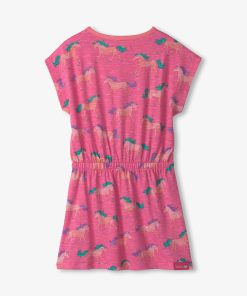 Add a sprinkle of magic to her day with the Girls Shimmer Horses Relaxed Dress! Crafted from cozy cotton, this dress features enchanting horse graphics with a subtle shimmer that’s perfect for little dreamers. The relaxed fit allows for free movement, making it ideal for twirling, running, and everything in between. Whether she’s at a party or enjoying playtime, this dress delivers comfort and charm in equal measure.
