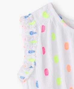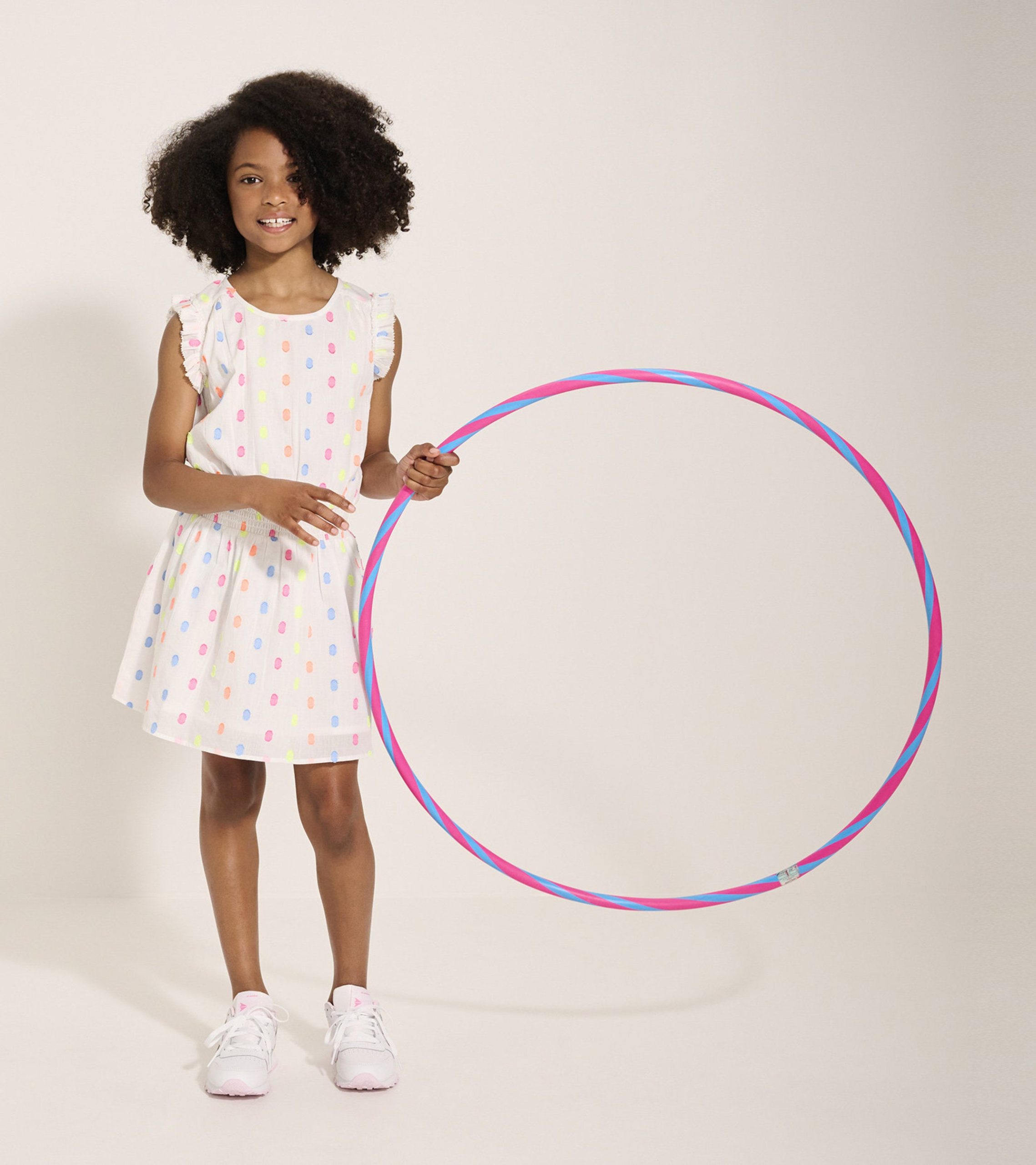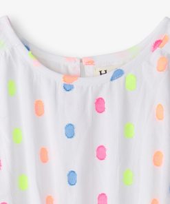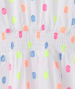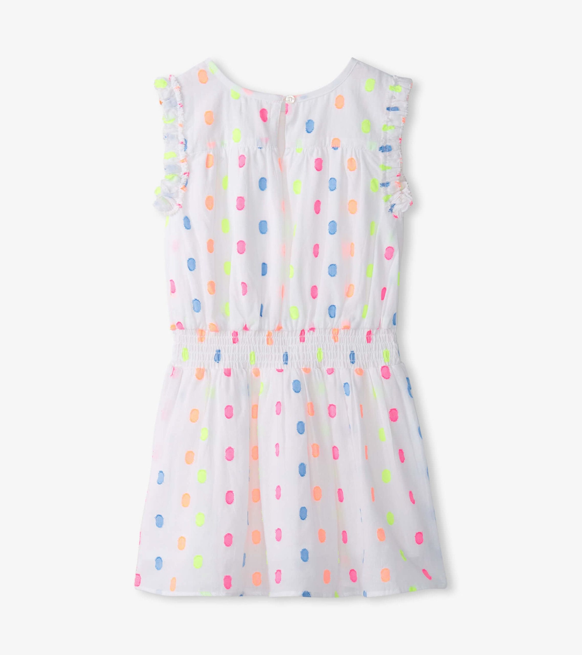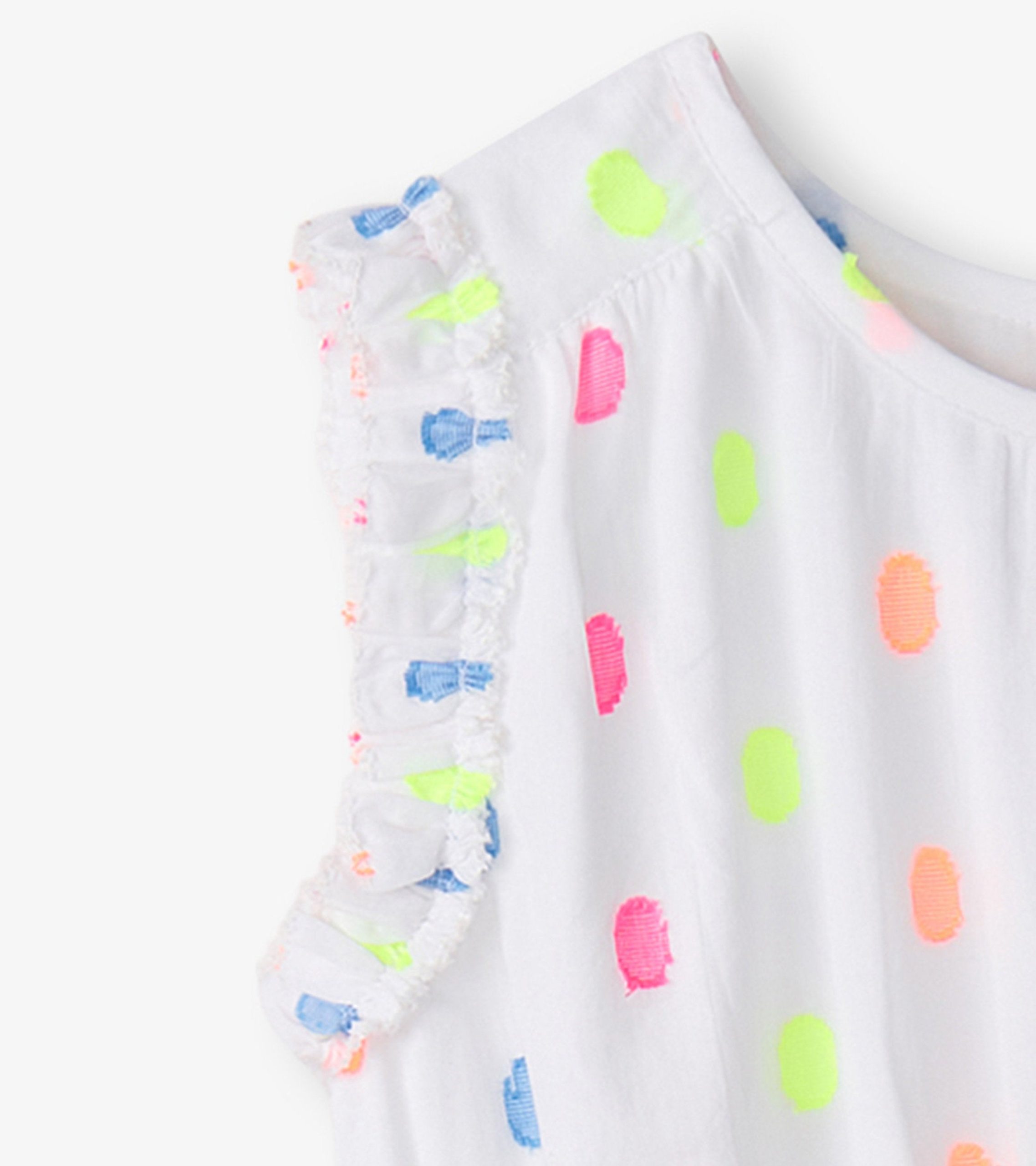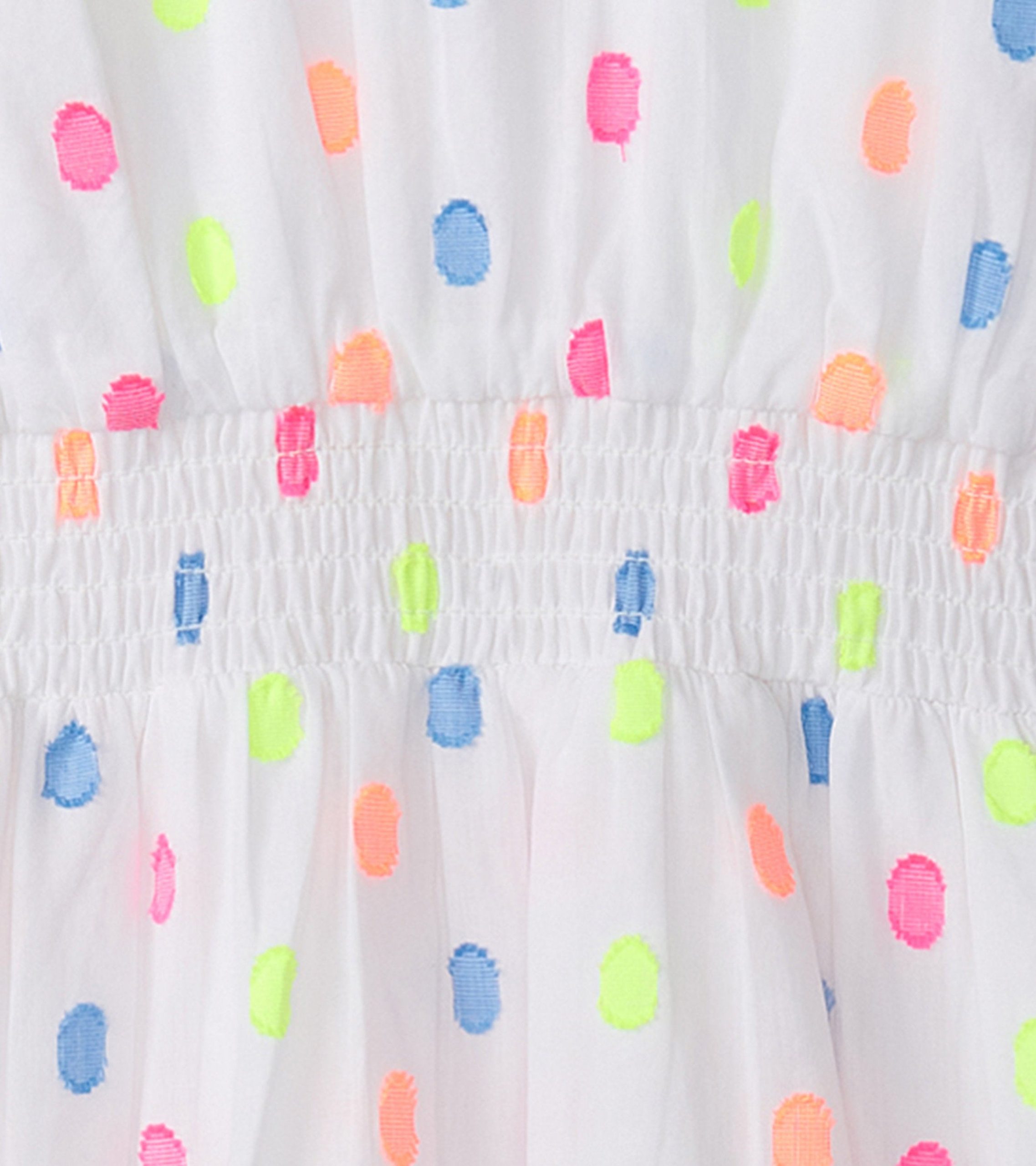Our Girls Summer Dots Woven Play Dress blends cotton and polyester for ultimate comfort. Featuring ruffled sleeves and a charming cinched waist, this dress is perfect for playtime!