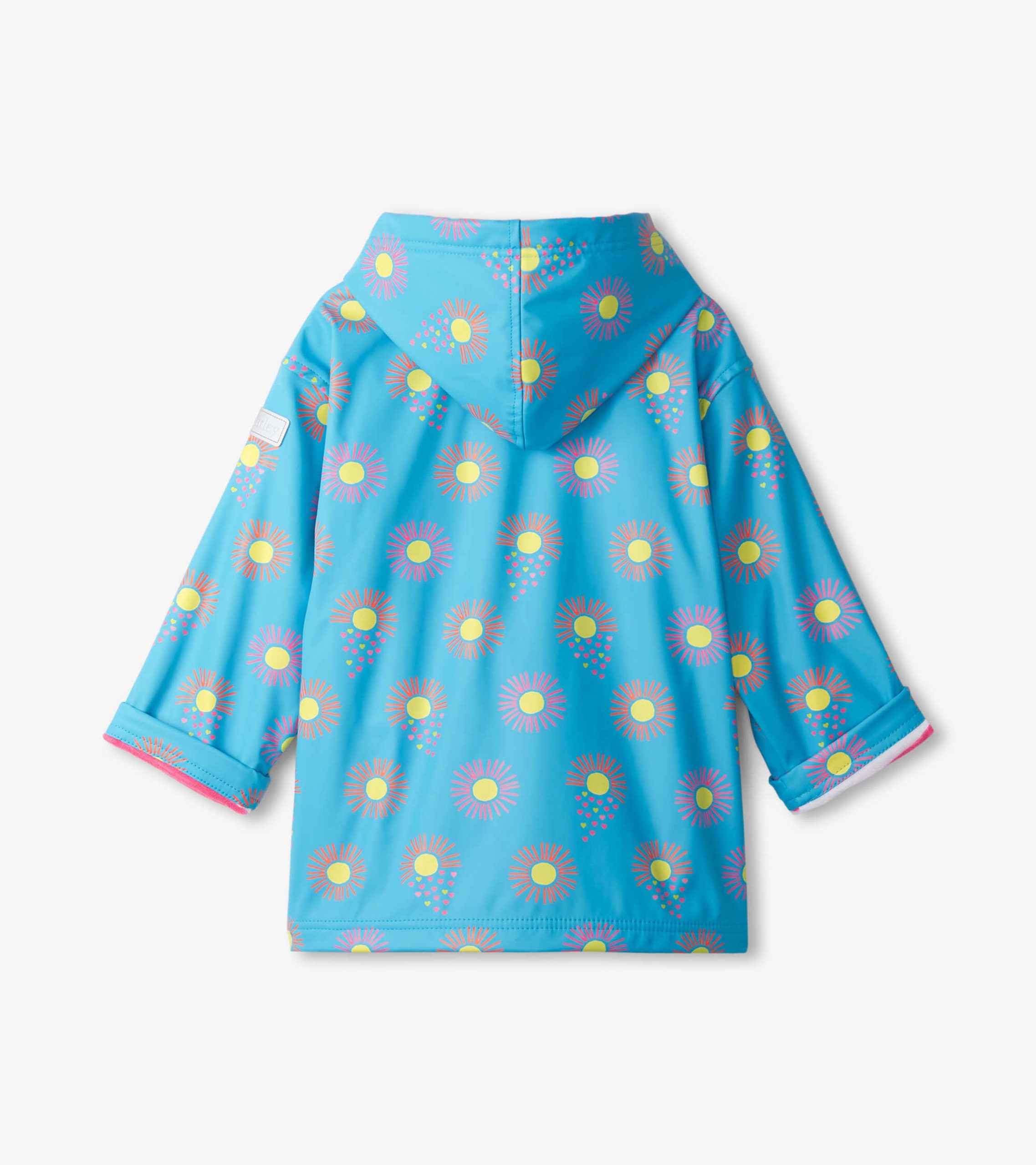 Our water-resistant Girls Sunrays Rain Jacket is perfect for rainy day outings! Whether your little one is splashing through puddles or dancing in the rain, our PVC-free design offers ultimate splash protection and comfort, while the durable construction ensures long-lasting use.