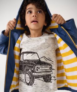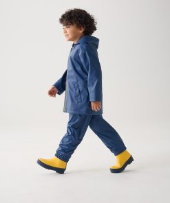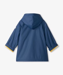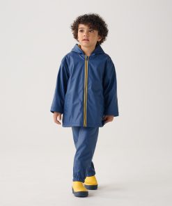 This navy and yellow water-resistant raincoat is the perfect attire for any rainy day outing! Whether it be for splashing through puddles or dancing in the rain, our PVC-free design offers ultimate splash protection and comfort, while the durable construction ensures long-lasting use.